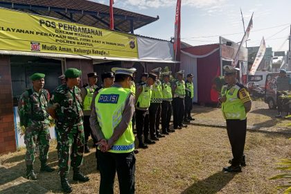 Bantul – Anggota Koramil 04/Sewon melaksanakan kegiatan pengamanan dalam rangka menyambut Hari Raya Idul Fitri 1447 H Tahun 2026 di Pos Pelayanan Terpadu Druwo, Kalurahan Bangunharjo, Kapanewon ...