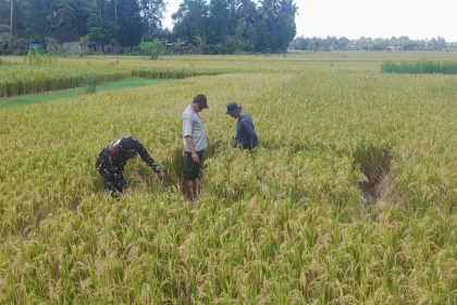 Bantul – Babinsa Kalurahan Caturharjo Koramil 16/Pandak Kodim 0729/Bantul, Serma Tri Wahyudianto melaksanakan monitoring kegiatan ubinan padi di lahan Kelompok Tani Rukun, Dusun Tegalayang 10, K...