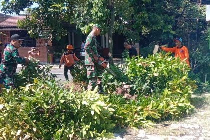 Bantul – Babinsa Kalurahan Segoroyoso Koramil 07/Pleret melaksanakan kegiatan kerja bakti penebangan pohon yang mengganggu jaringan listrik di Dusun Kloron RT 03, Kalurahan Segoroyoso, Kapanewon...