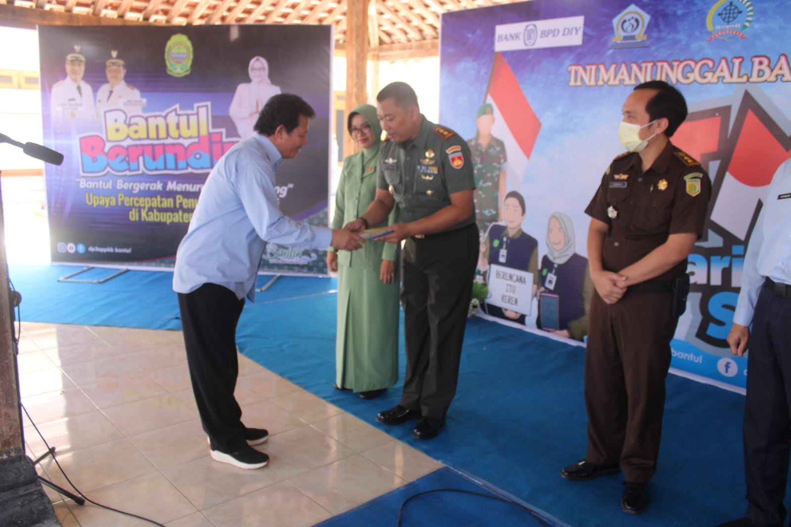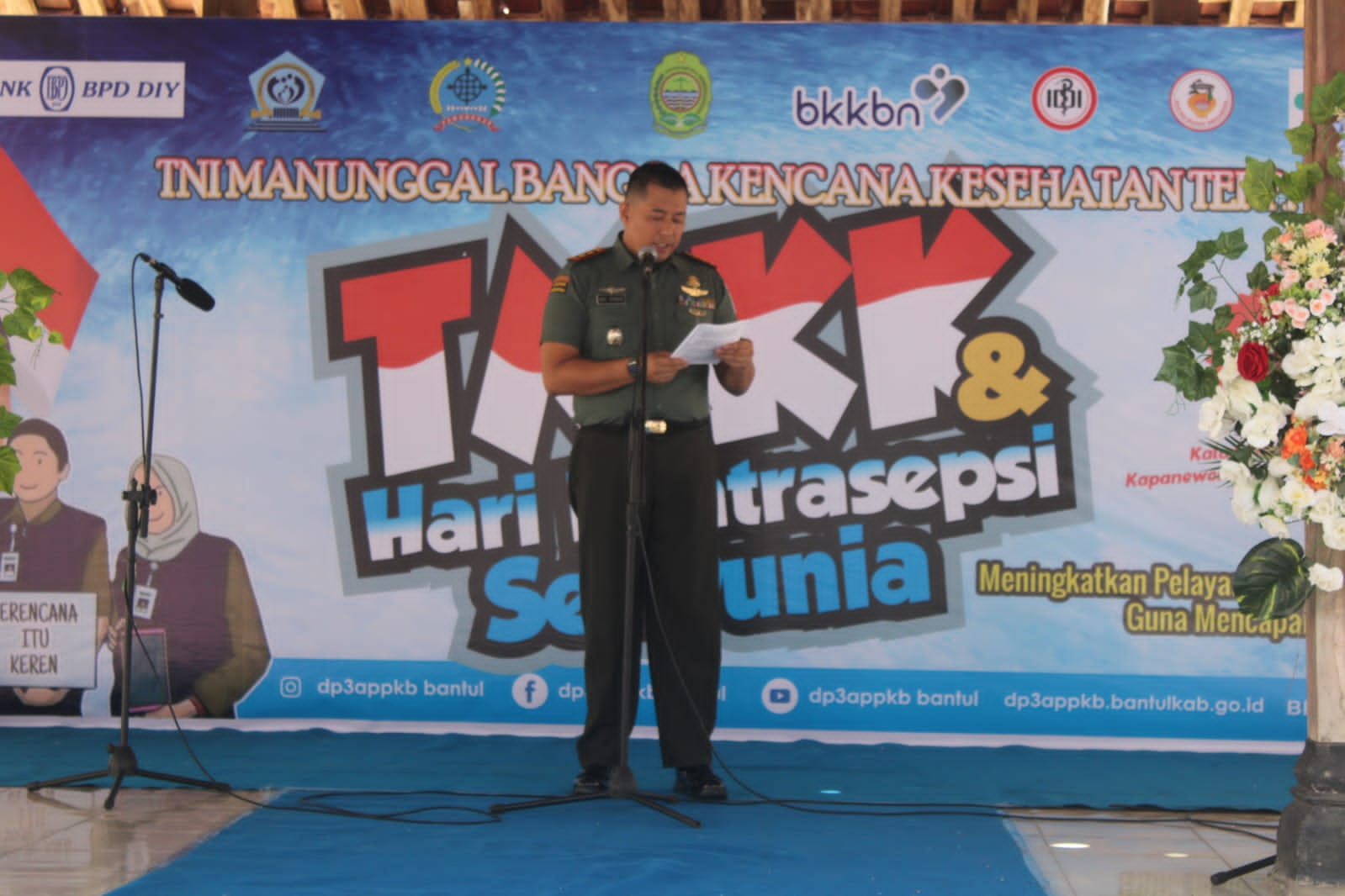 Bantul – Kodim 0729 Bantul Puncak Acara TNI Manunggal Bangga Kencana Kesehatan Terpadu dan Peringatan Hari Kontrasepsi Sedunia di Kalurahan Selopamioro, Imogiri, Bantul. (Selasa 26/09)