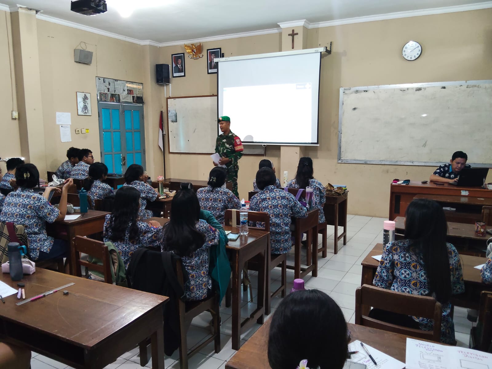 Bantul – Babinsa Argodadi Sertu Suyanto bersama Babinsa Argosari Koptu Nicholas Aditya RS melaksanakan kegiatan sosialisasi penerimaan TNI AD Bintara PK dan Tamtama PK Tahun 2026 di SMA Pangudi Luhur Sedayu, Kalurahan Argosari, Kapanewon Sedayu, Bantul. Kegiatan ini diikuti oleh siswa-siswi SMA Pangudi Luhur. Kamis, (22/01/2026).