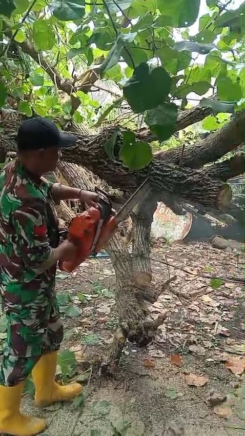 Bantul – Babinsa Parangtritis bersama Polsek Kretek, BPBD Kabupaten Bantul, FPRB Paris Tangguh, dan warga sekitar melaksanakan kegiatan evakuasi pohon tumbang, berlokasi di rumah Bapak Suraji, Gumuk Pasir Dusun Samiran, wilayah utara Pantai Pandan Payung. Kamis, (22/01/2026).