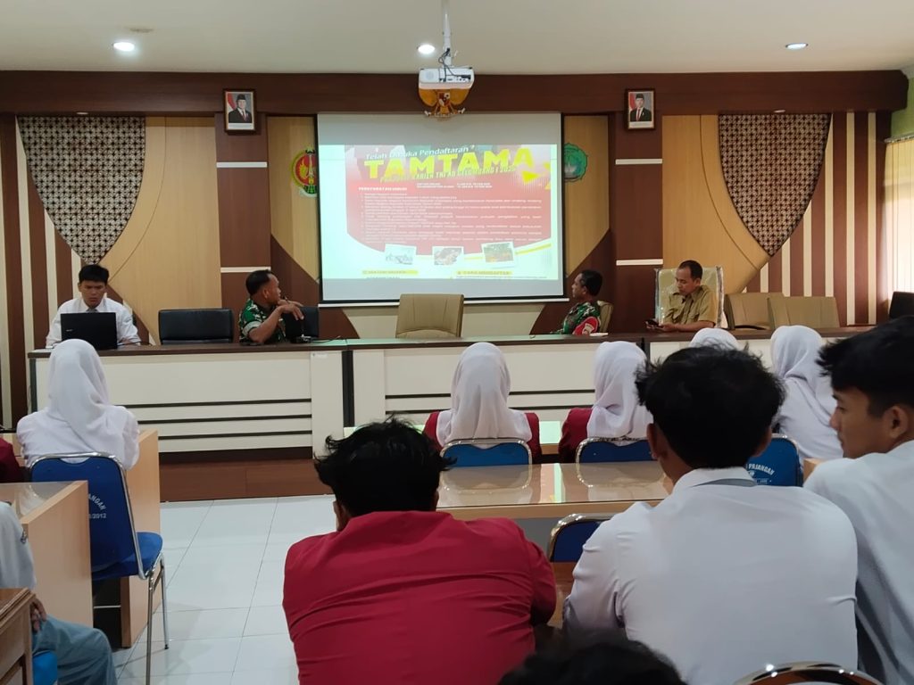 Batuud Pelda Sugiyono koramil pajangan melaksanakan kegiatan sosialisasi penerimaan prajurit Tamtama dan Bintara TNI AD Tahun 2026 bertempat di SMA Negeri 1 Pajangan, Kabupaten Bantul. Senin, (26/01/2026).