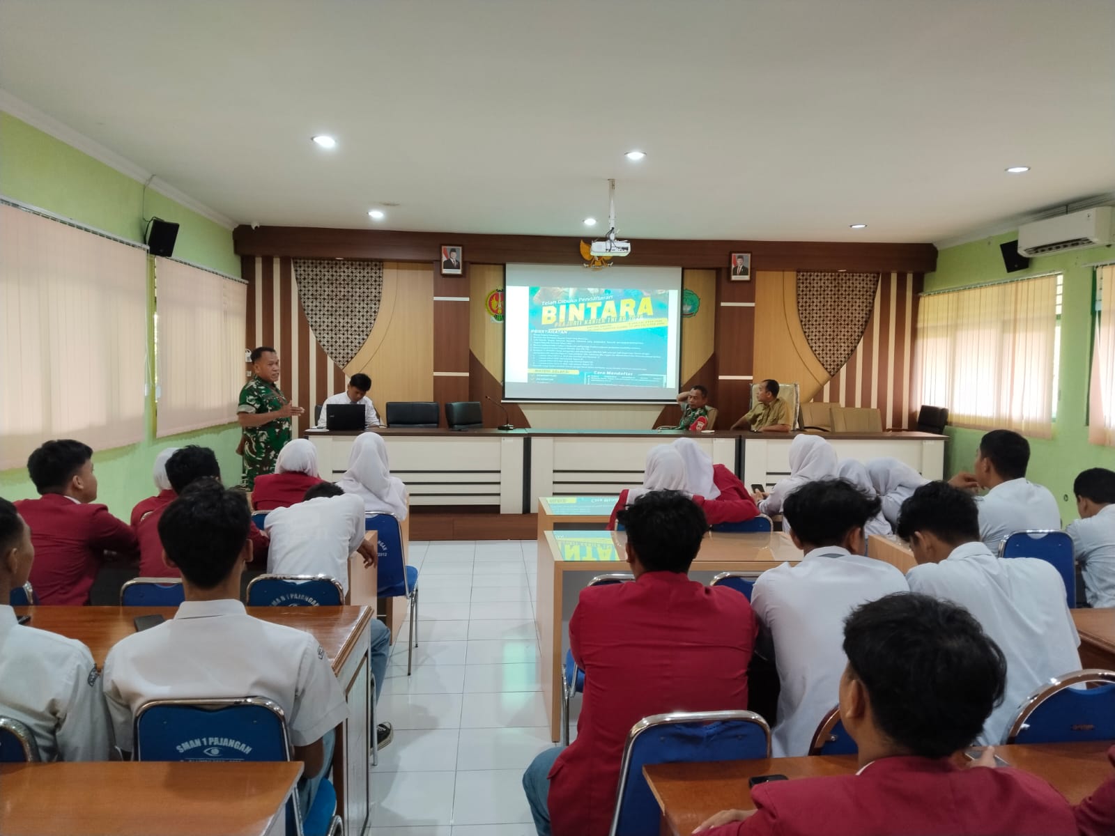 Kegiatan ini diikuti oleh para guru SMA Negeri 1 Pajangan dan Babinsa Guwosari sebagai upaya memberikan informasi serta motivasi kepada para siswa terkait proses dan persyaratan pendaftaran prajurit TNI AD. kegiatan sosialisasi berjalan aman dan lancar.