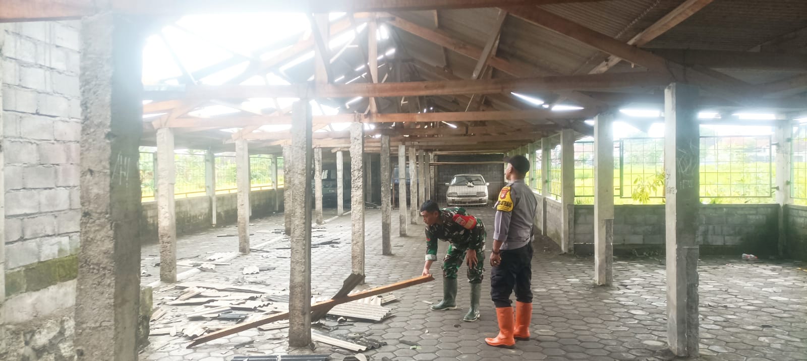 Babinsa Kalurahan Srimartani bersama Bhabinkamtibmas melaksanakan monitoring dan membantu proses evakuasi pohon tumbang di Dusun Gedongan yang dilakukan FPRB Srimartani, serta membantu pembersihan rumah warga terdampak luapan air di Dusun Kemloko RT 01 dan Bulusari RT 04. Selain itu, Babinsa juga memonitor kerusakan atap ruang kelas dan area parkir di SMK Ma’arif 1 Piyungan akibat angin kencang.