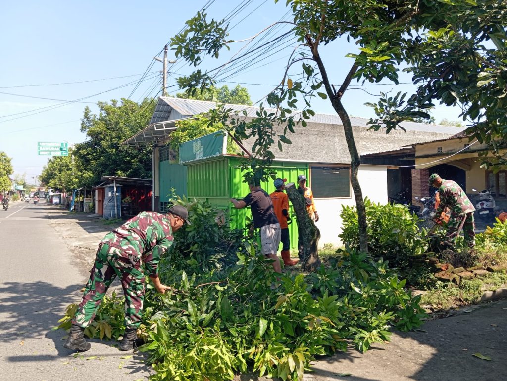 Bantul – Babinsa Kalurahan Segoroyoso Koramil 07/Pleret melaksanakan kegiatan kerja bakti penebangan pohon yang mengganggu jaringan listrik di Dusun Kloron RT 03, Kalurahan Segoroyoso, Kapanewon Pleret, Kabupaten Bantul. Kegiatan ini melibatkan Babinsa, Relawan FPRB Kalurahan Segoroyoso, serta warga masyarakat setempat. Minggu, (29/03/2026).