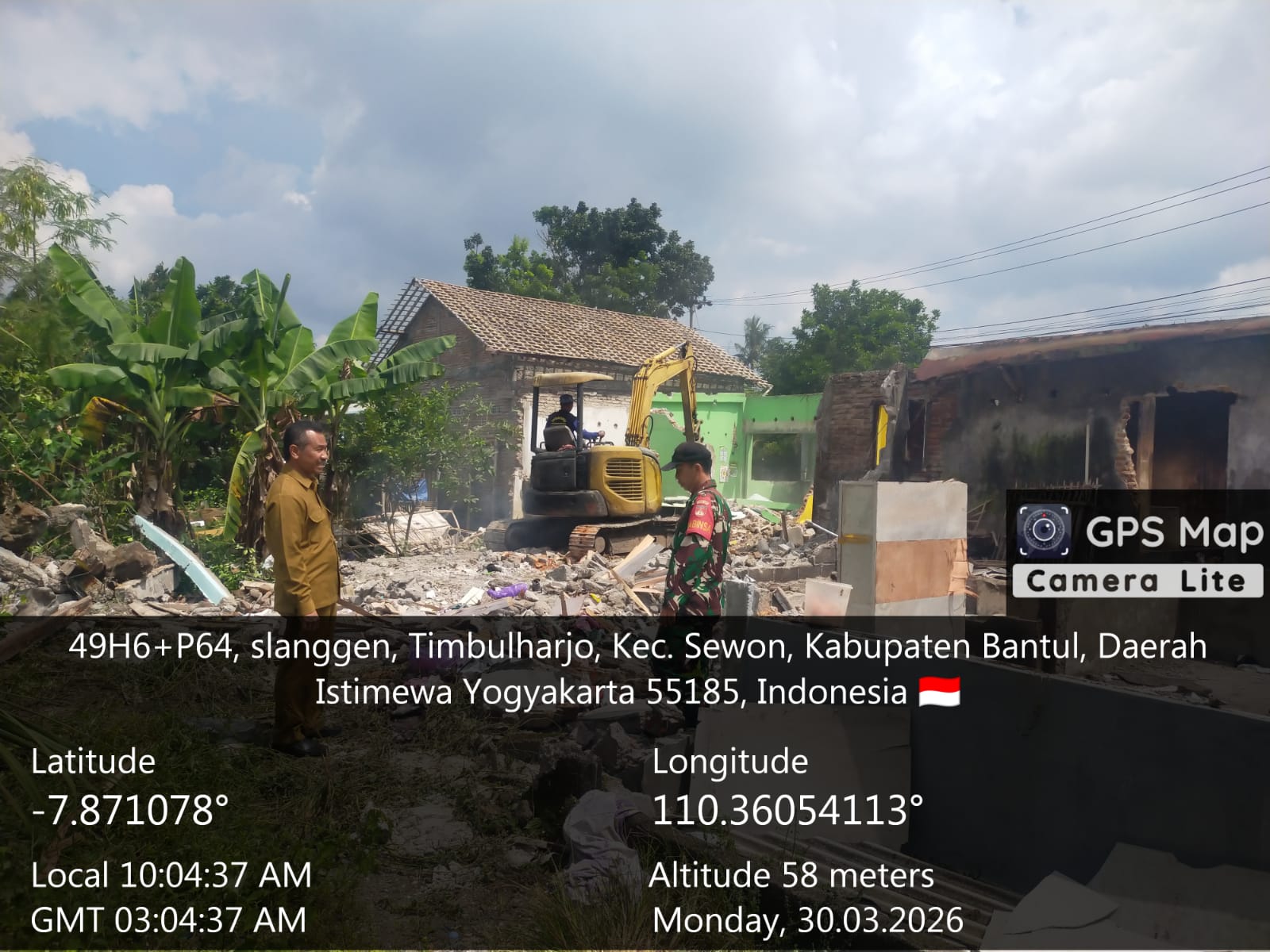 Bantul – Babinsa Koramil Sewon melaksanakan pendampingan kegiatan penataan lokasi KDMP di Kalurahan Timbulharjo, Kapanewon Sewon, Kabupaten Bantul, Kegiatan yang dilakukan meliputi pemotongan sebagian pohon tebu yang berada di belakang lokasi KDMP sebagai langkah awal pembersihan area. Proses tersebut akan dilanjutkan pada keesokan harinya guna mempercepat penataan lahan. Senin, (30/3/2026).