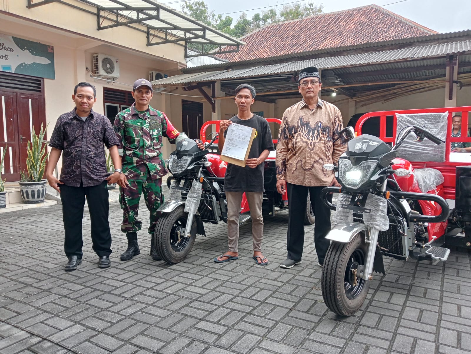 Bantul – Babinsa Kalurahan Trimurti, Koramil jajaran Kodim 0729/Bantul, Sertu Ngadiranto melaksanakan pendampingan kegiatan penerimaan distribusi bantuan motor roda tiga untuk operasional KDKMP Kalurahan Trimurti. Kegiatan tersebut berlangsung bertempat di Balai Kalurahan Trimurti, Kapanewon Srandakan, Kabupaten Bantul. Kamis (02/04/2026).