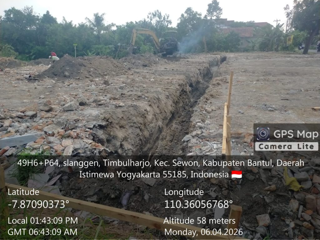 Bantul – Pembangunan KDKMP di Kalurahan Timbulharjo, Kapanewon Sewon terus dilaksanakan dengan melanjutkan pengurukan tanah serta penggalian pondasi footplate. Kegiatan ini merupakan bagian dari tahapan awal pembangunan guna mempersiapkan struktur dasar bangunan.Senin,(6/4/2026).
