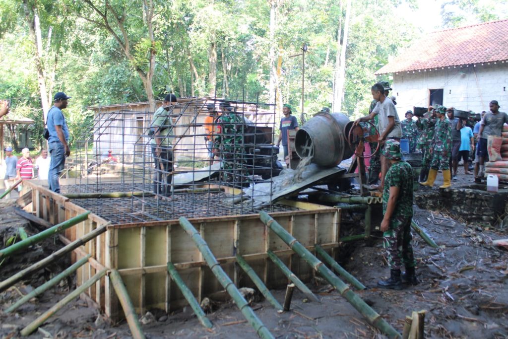 Bantul – Pembangunan Jembatan Garuda yang berlokasi di Dusun Santan RT 04, Kalurahan Guwosari, terus menunjukkan progres positif. Babinsa Guwosari Sertu Hendrawan bersama Kopka Sarwidi melaksanakan kegiatan pembangunan dengan fokus pada pengecoran footplate sisi barat sebagai bagian dari struktur utama penopang jembatan. Kamis,(9/4/2026).