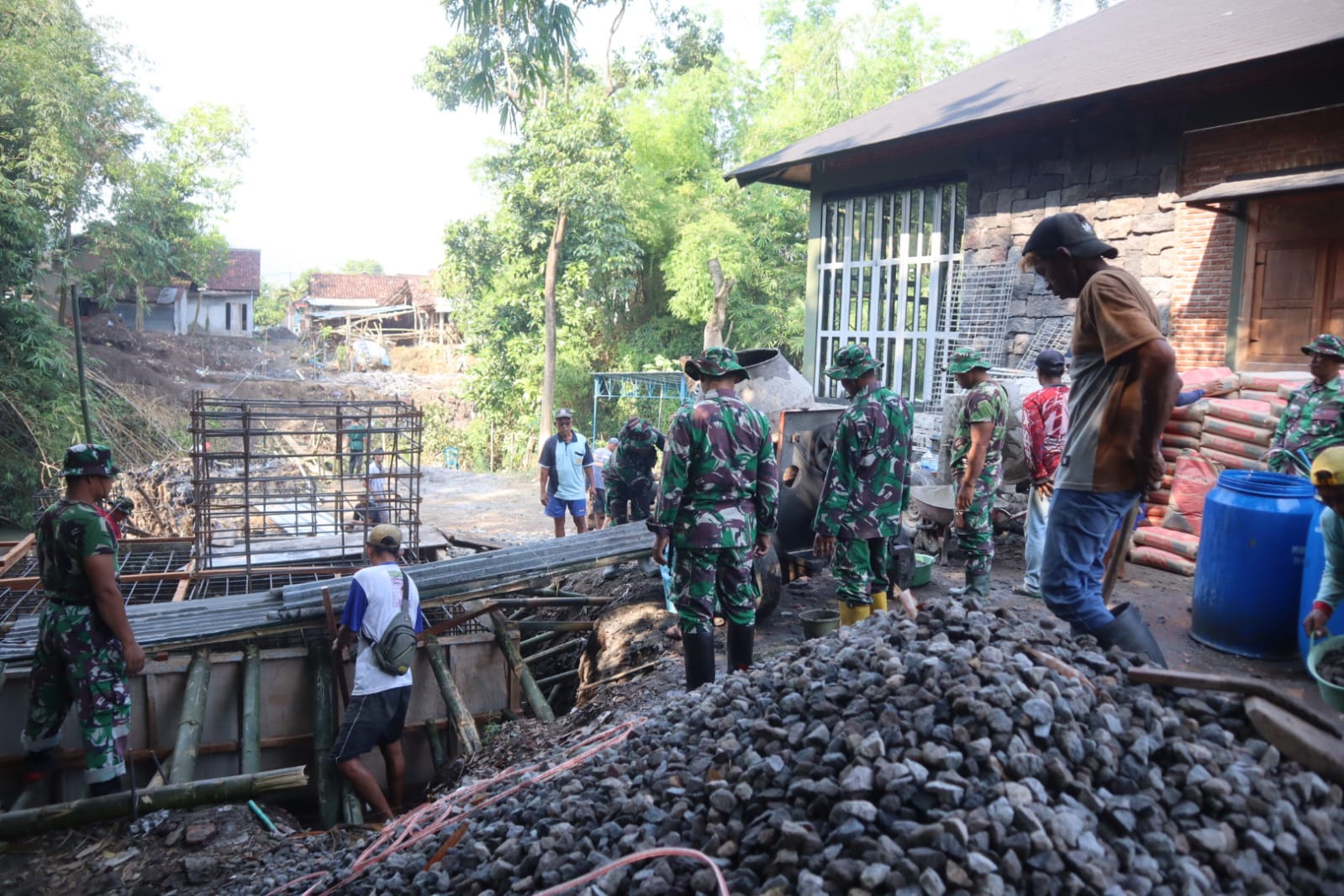 Dalam kegiatan tersebut, Babinsa bersama warga tampak bahu-membahu dalam proses pembangunan jembatan. Kehadiran anggota tidak hanya sebagai pemantau wilayah, namun juga terjun langsung membantu pekerjaan masyarakat sebagai wujud kemanunggalan TNI dengan rakyat. Jembatan Perintis Garuda ini nantinya akan memiliki peran penting sebagai penghubung antar wilayah serta mendukung aktivitas ekonomi dan sosial warga setempat.