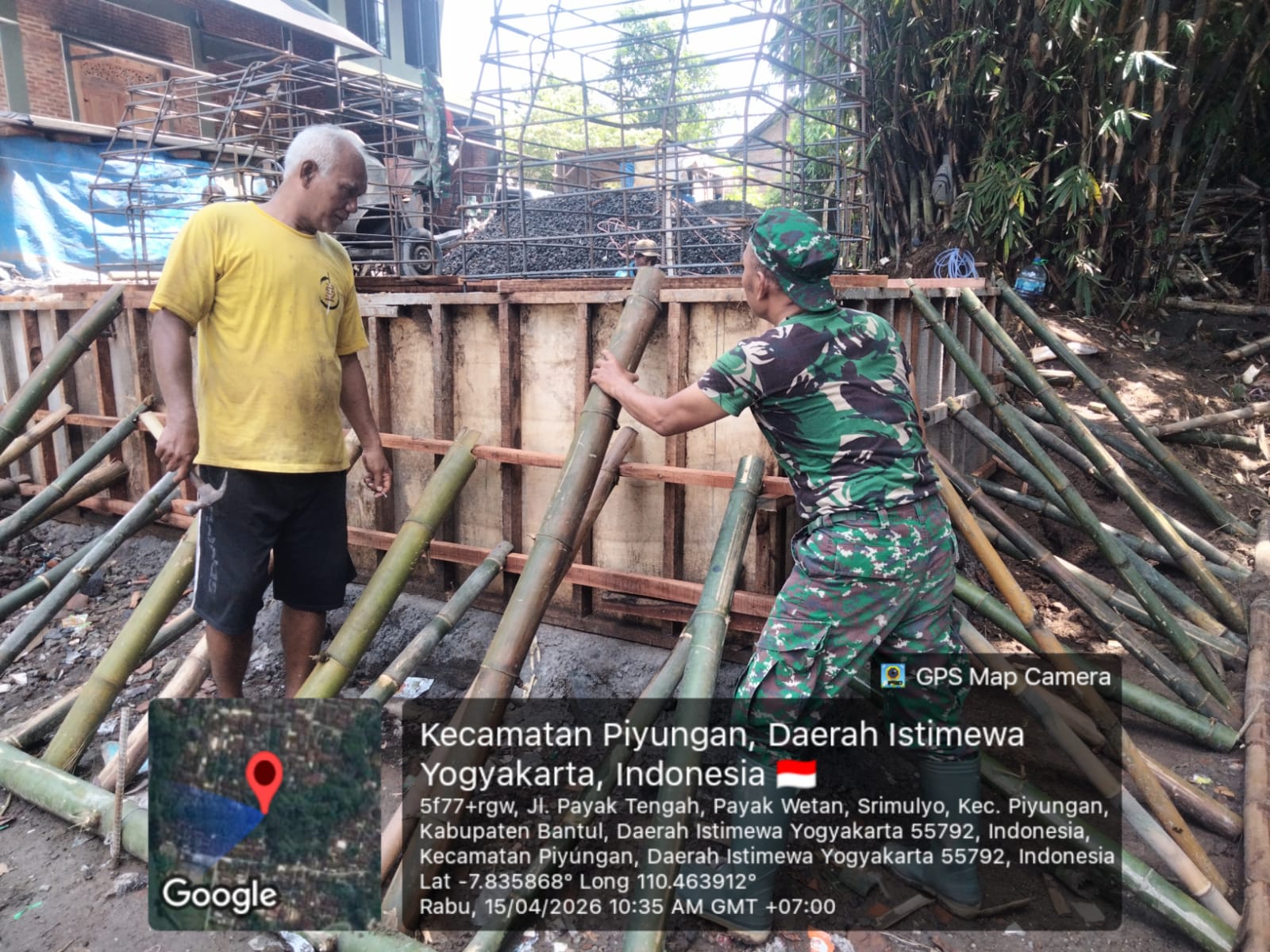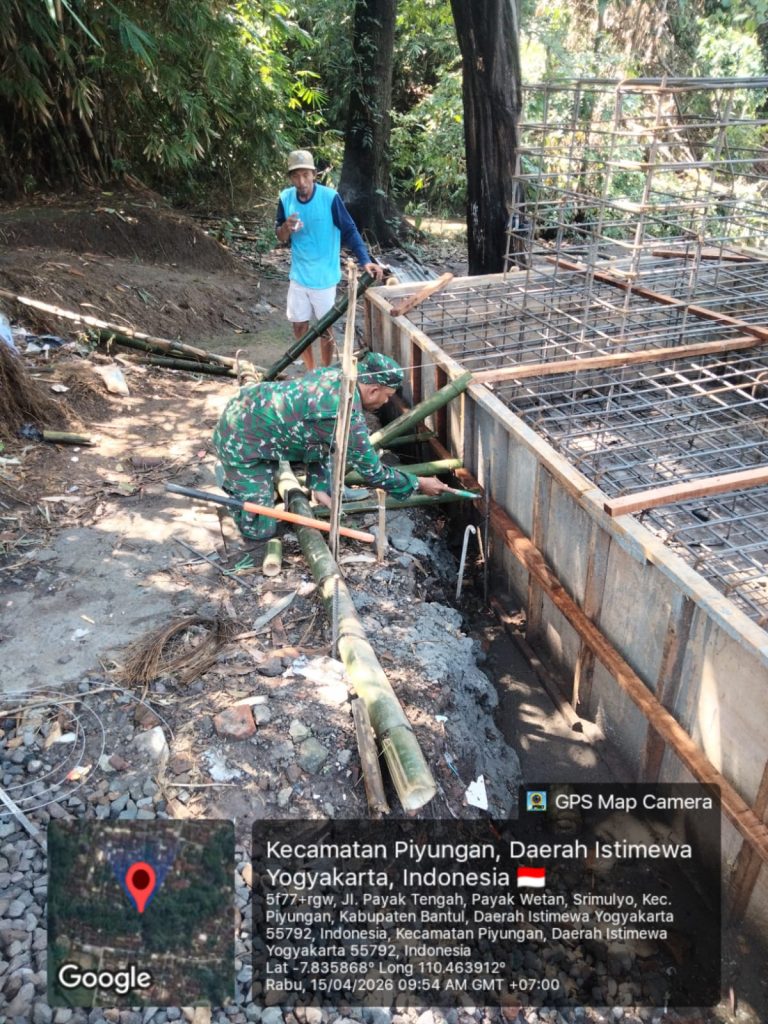 Bantul – Pembangunan jembatan di Payak Wetan RT 03, Kalurahan Piyungan saat ini memasuki tahap pemasangan pondasi sebagai dasar utama konstruksi. Kegiatan tersebut merupakan bagian penting dalam memperkuat struktur awal jembatan. Pelaksanaan dilakukan secara gotong royong bersama warga dan aparat kewilayahan sehingga berjalan lancar dan penuh kebersamaan. Kamis, (16/4/2026).