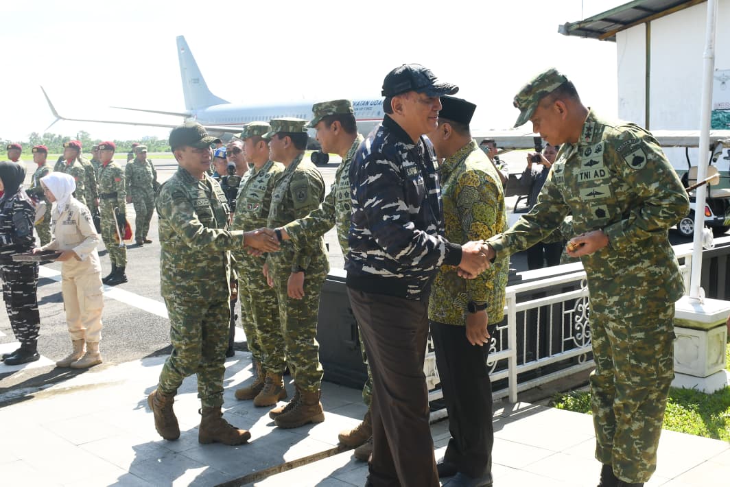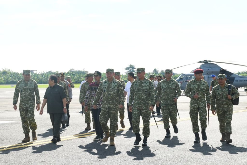 Semarang – Pangdam IV/Diponegoro Mayjen TNI Achiruddin, S.E., M.Han., menyambut kunjungan kerja Menteri Pertahanan RI Jenderal TNI (Purn) Dr. Sjafrie Sjamsoeddin dan Panglima TNI Jenderal TNI Agus Subiyanto, S.E., M.Si., di Lanumad Ahmad Yani, Kamis (23/4/2026). Kedatangan rombongan tingkat pusat yang juga didampingi Kepala Staf Angkatan Darat Jenderal TNI Maruli Simanjuntak, M.Sc., ini merupakan bagian dari agenda penguatan pertahanan negara di wilayah Jawa Tengah.