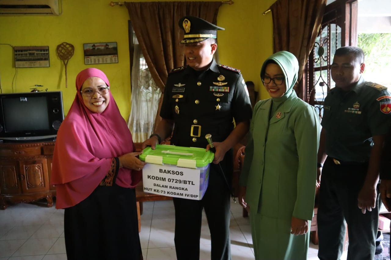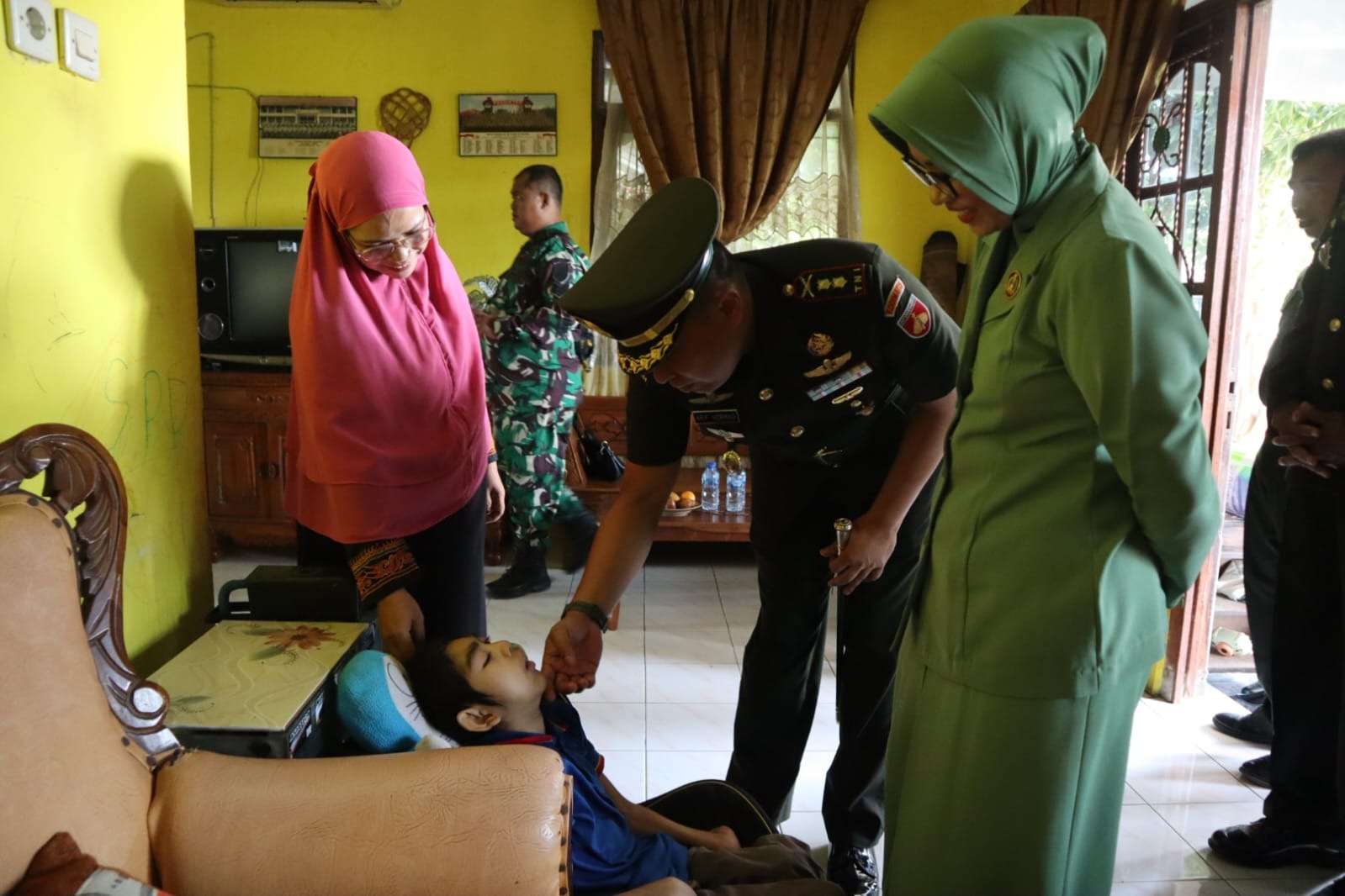 Bantul-Dalam rangka memperingati HUT Ke-78 TNI Kodim 0729/Bantul melaksanakan berbagai macam kegiatan diantaranya bakti sosial yang diwujudkan dengan kegiatan anjangsana yang ditujukan kepada Keluarga Peltu Surajiyana dimana salah satu anaknya sejak kecil menderita sakit.