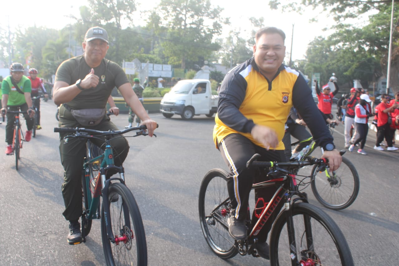 Bantul-Kodim 0729/Bantul menggelar sepeda gembira (fun bike) dan senam bersama yang diikuti Forkopimda dan ribuan penggemar sepeda santai dari berbagai kalangan, guna memeriahkan Hari Ulang Tahun (HUT) Tentara Nasional Indonesia (TNI) ke-78 tahun 2023, yang bertempat di Lapangan Trirenggo, Bantul, Minggu (08/10).
