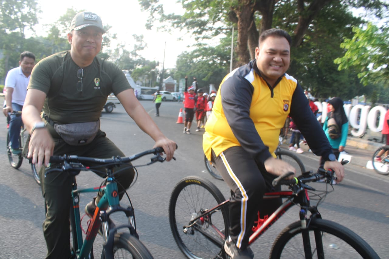 Dandim 0729/Bantul Letkol Inf Arif Hermad, S.I.P., M.M., mengibarkan bendera start sebagai tanda fun bike dimulai dengan rute Lapangan Trirenggo, Perempatan Polsek Bantul, Perempatan Tajeman, Kweden melewati Ringroad dan finish lagi di Lapangan Trirenggo.