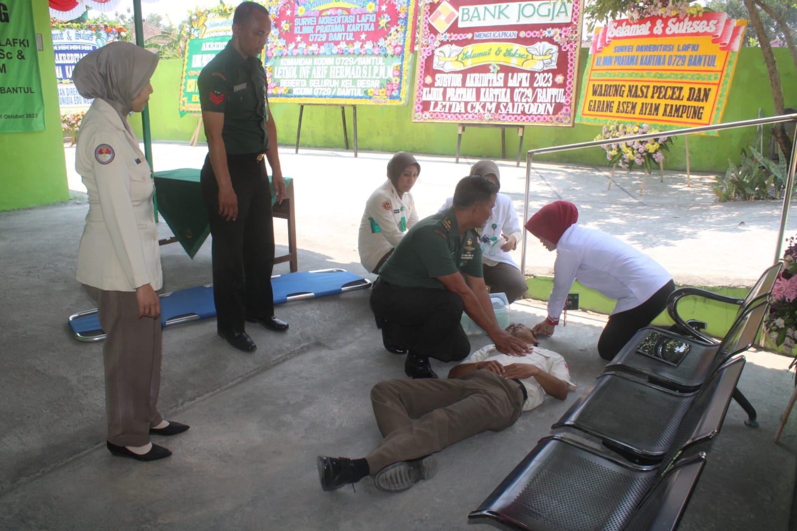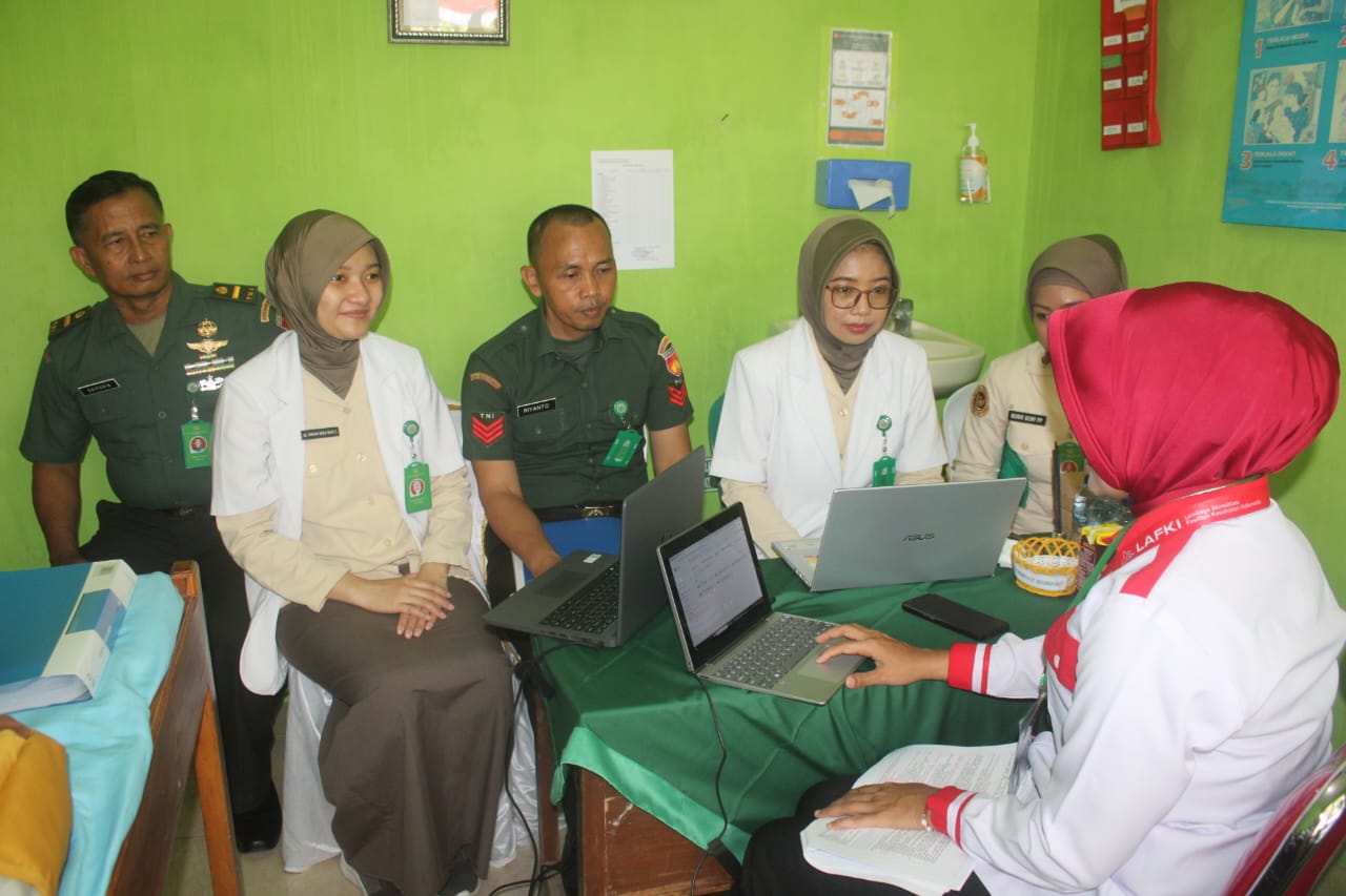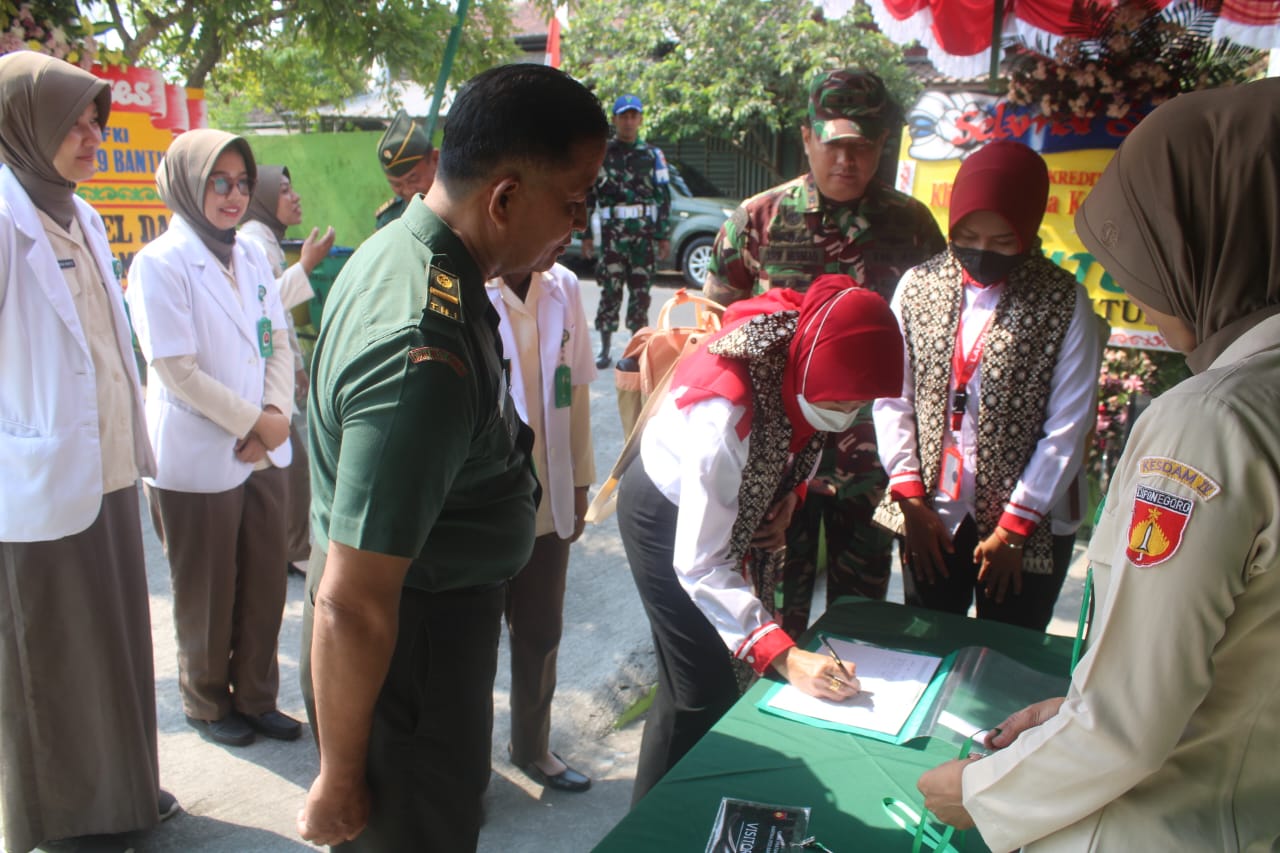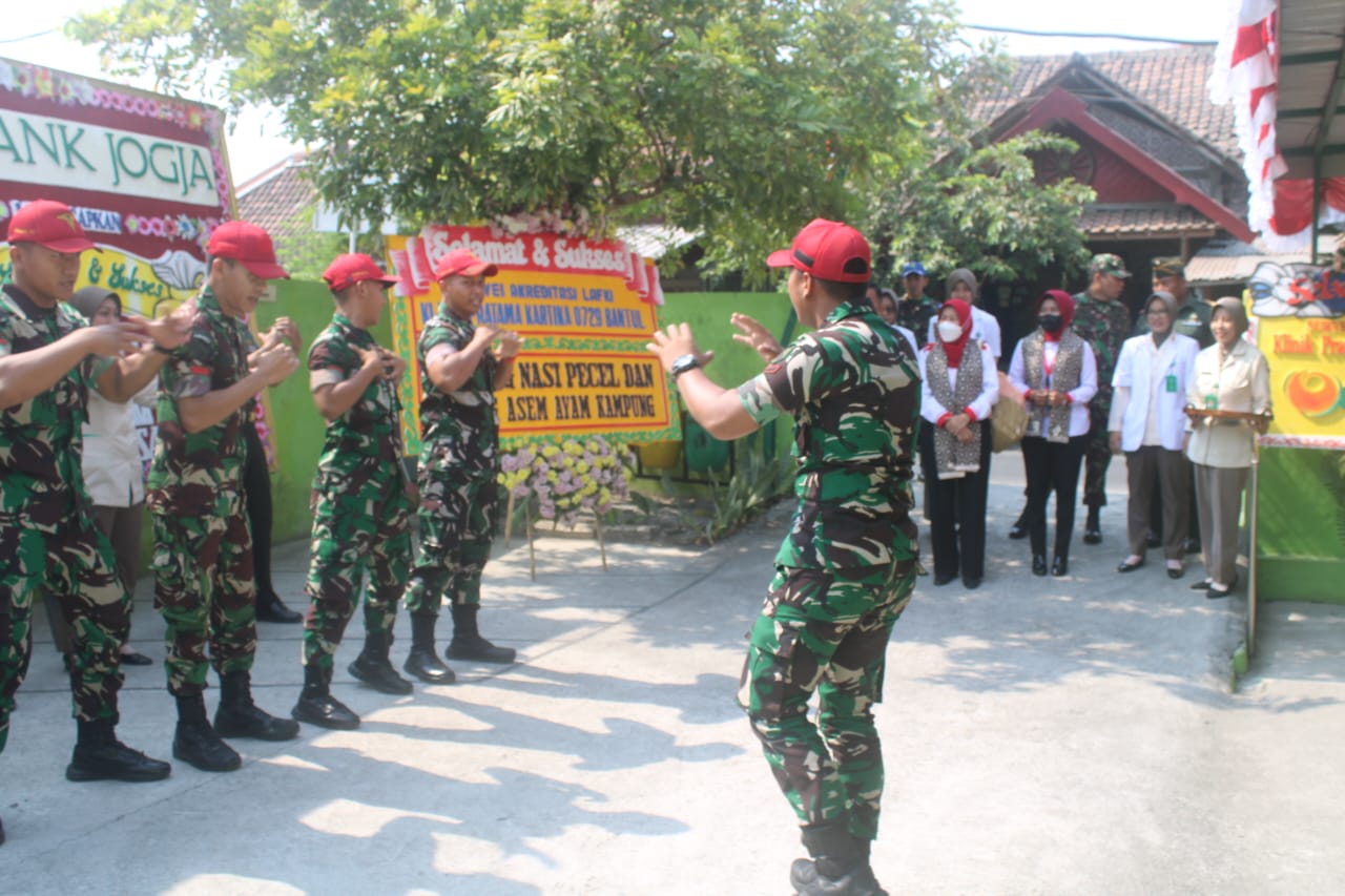 Bantul – Dandim 0729 Bantul, Letkol Inf Arif Hermad, S.I.P., M.M. didampingi Ketua Persit Kartika Chandra Kirana Cabang XXX Dim 0729 Koorcab Rem 072 PD IV/Diponegoro Ny. Anie Arif Hermad menyambut kedatangan Tim Survei Akreditasi Klinik (LAFKI) dilakukan oleh dr. Wisnu Murti Yani, M.Sc Dan dr Wiji Astuti, S.ST,MKM di Klinik Pratama 0729 Bantul Jl. Parangtritis Jl. Tarudan No.5, Tarudan, Bangunharjo, Kec. Sewon, Kabupaten Bantul, Daerah Istimewa Yogyakarta. (Sabtu 21/10/2023).
