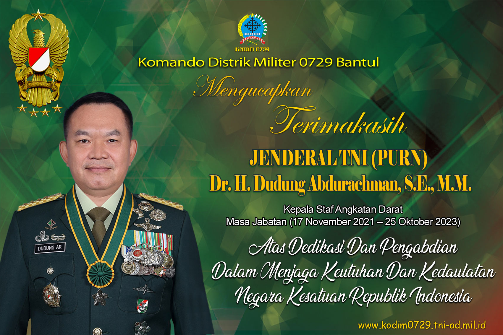 Terimakasih Jenderal TNI (Purn) Dr Dudung Abdurachman, S.E., M.M. Kepala Staf Angkatan Darat Masa Jabatan (17 November 2021 – 25 Oktober 2023)