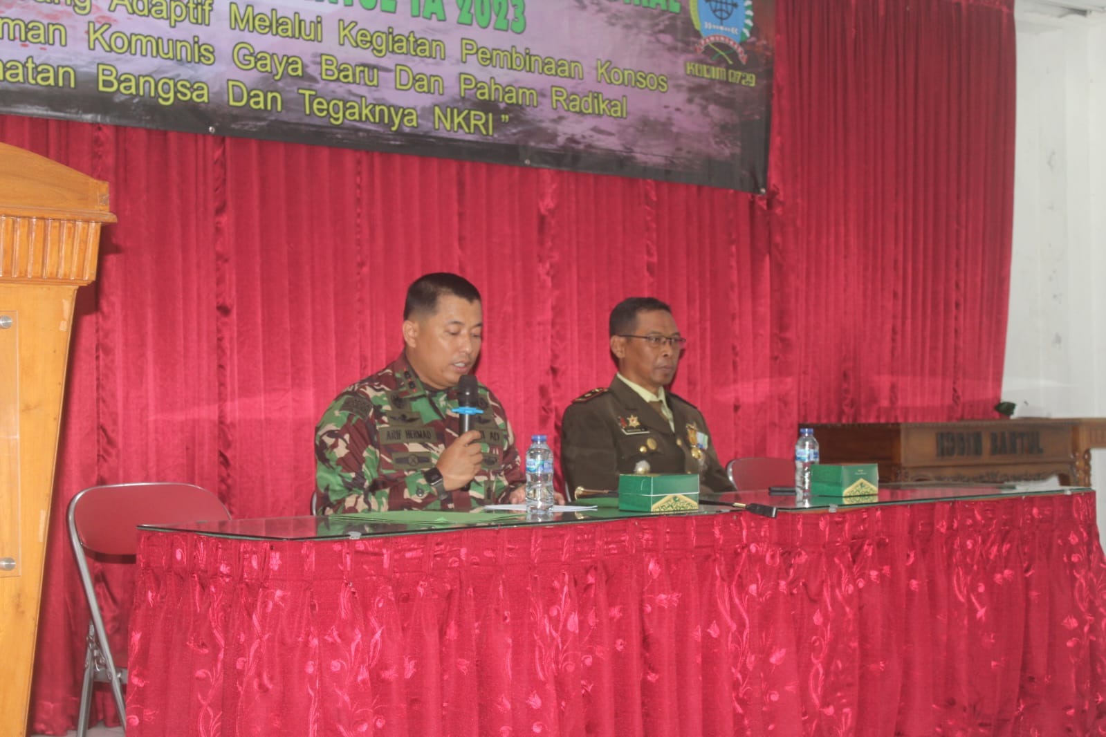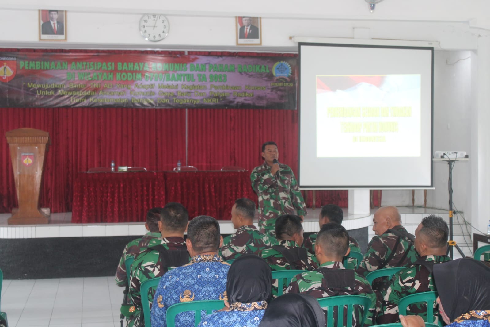 Komandan Kodim 0729 Bantul, Letkol Inf Arif Hermad, S.I.P., M.M. selaku pimpinan acara saat memberi sambutan dihadapan peserta Pembinaan Antisipasi Balatkom dan Paham Radikal tahun 2023 diantaranya menyampaikan bahwa terselenggaranya kegiatan tersebut merupakan upaya Kodim 0729 Bantul agar kita semua semakin memahami tentang bahaya laten komunis dan paham radikal terhadap keselamatan bangsa dan Negara Indonesia.