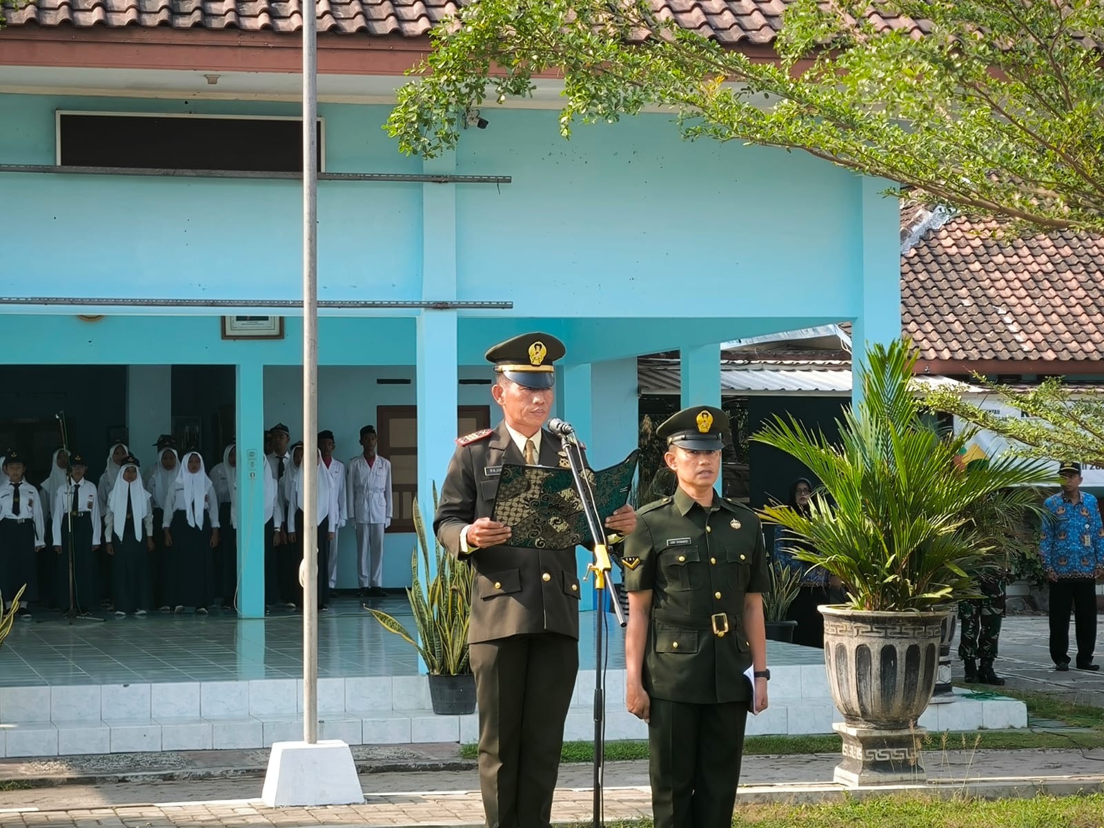 Sedangkan bertindak sebagai Perwira upacara Bati TUUD Koramil 16/Pandak Peltu Rosul, Komandan Upacara Bati Wanwil Koramil 16/Pandak Serma Hendrik Cahyono, Pengibar Bendera siswa siswi dari SMK N 1 Pandak, Pembaca Pembukaan UUD 1945 siswa dari SMP N 1 Pandak, Pembaca Pesan Pahlawan siswa dari SMP N 2 Pandak, Paduan Suara siswa siswi dari SMP N 3 Pandak, dan pembaca Doa bpk Abdullah Toyib dari KUA Kapanewon Pandak.