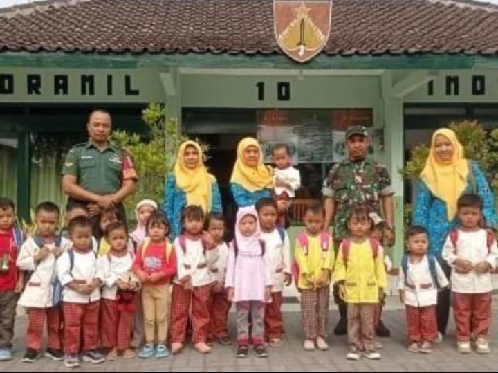 Imogiri – Tiada hentinya Koramil 10/Imogiri,Kodim 0729/Bantul, menerima kunjungan anak TK dan Paud dari berbagai Kalurahan yang ada di Kapanewon Imogiri. Seperti pada hari ini Koramil 10/Img mendapat kunjungan dari TK Pertiwi Imogiri. Kunjungan sebagai rangkaian Outing Class dan pengenalan anak anak usia dini kepada dunia profesi.