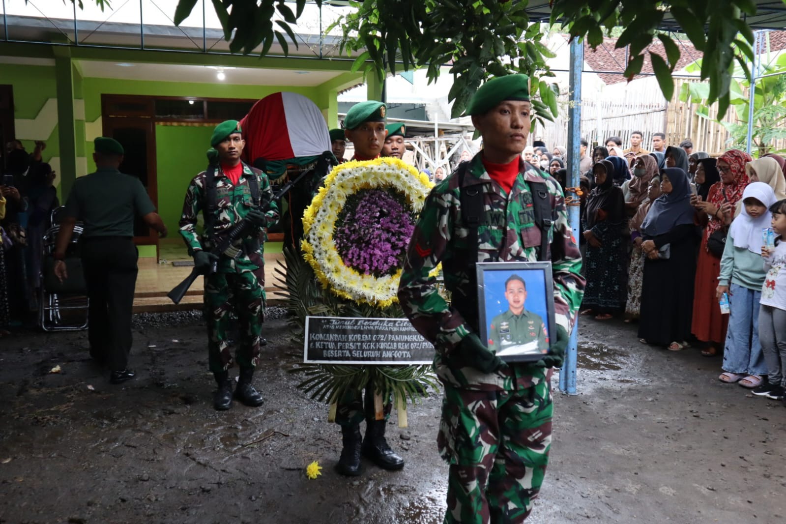Bantul-Kodim 0729/Bantul melaksanakan upacara persemayaman dan pemakaman militer Praka Dyan Ramdhan Pradipta yang terakhir berdinas di Korem 072/Pamungkas sebagai ADC Kasrem 072/Pamungkas. Almarhum meninggal pada hari Selasa 28 November 2023 di RS PKU Gamping karena sakit.