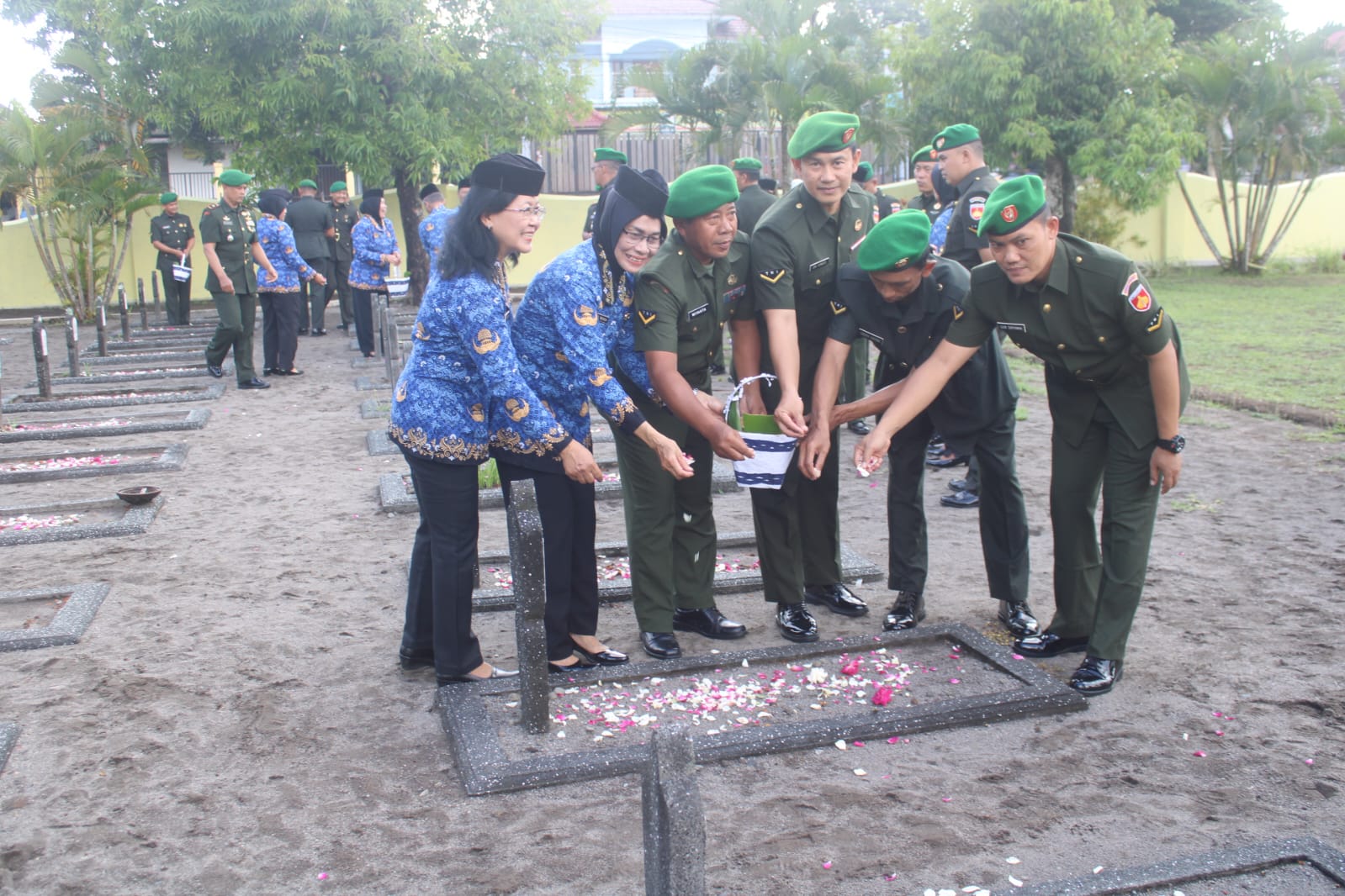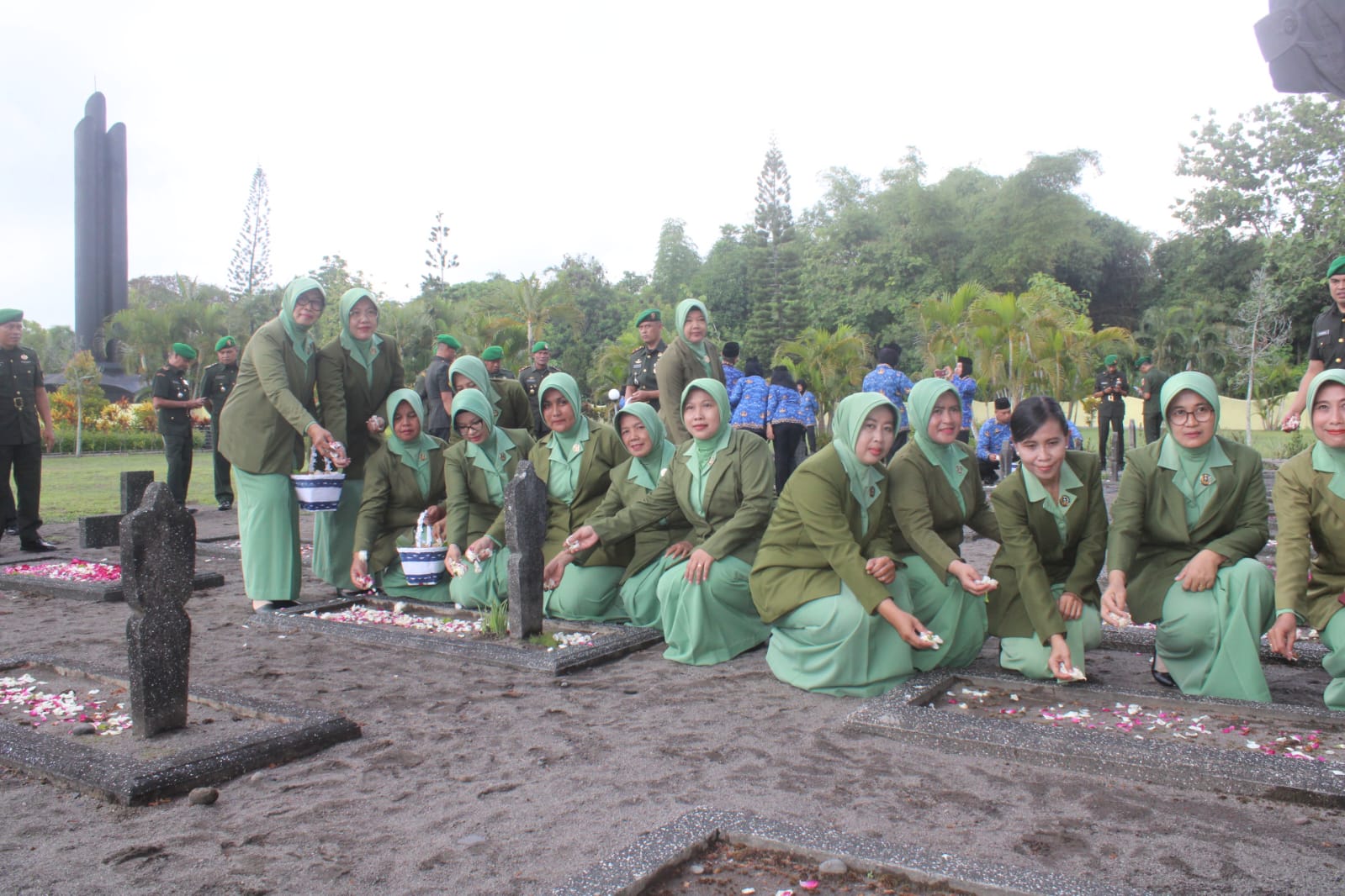 Ziarah rombongan yang diikuti oleh para Perwira, Bintara, Tamtama dan pengurus Persit KCK Cab. XXX Dim 0729 Bantul diawali dengan penghormatan kepada arwah dan berlangsung dengan tertib dan khidmat