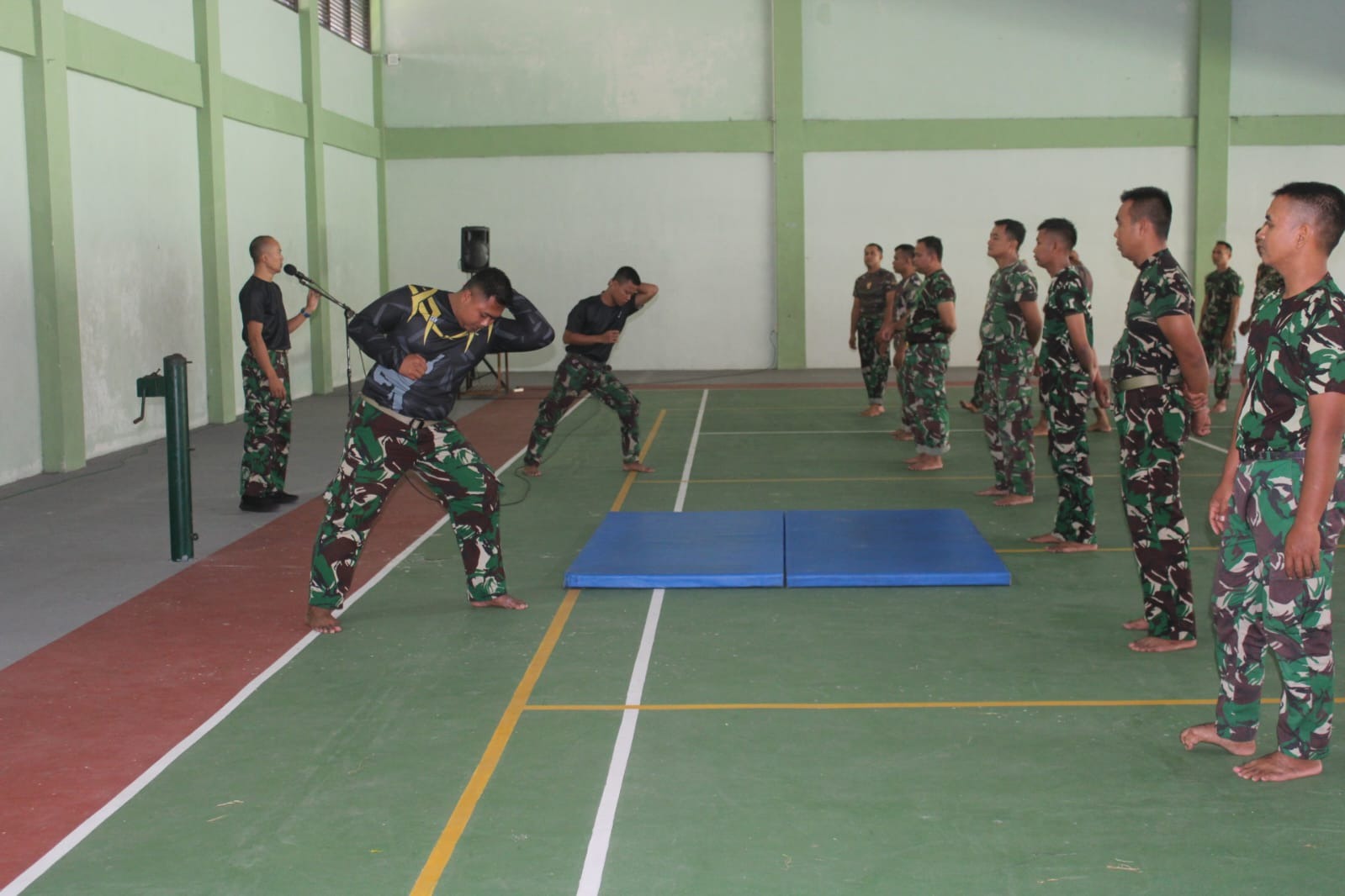 “Latihan beladiri taktis ini bertujuan untuk membentuk pribadi prajurit yang berani dan profesional serta tangguh dalam menghadapi segala ancaman,” kata Mayor Arm Mespan.