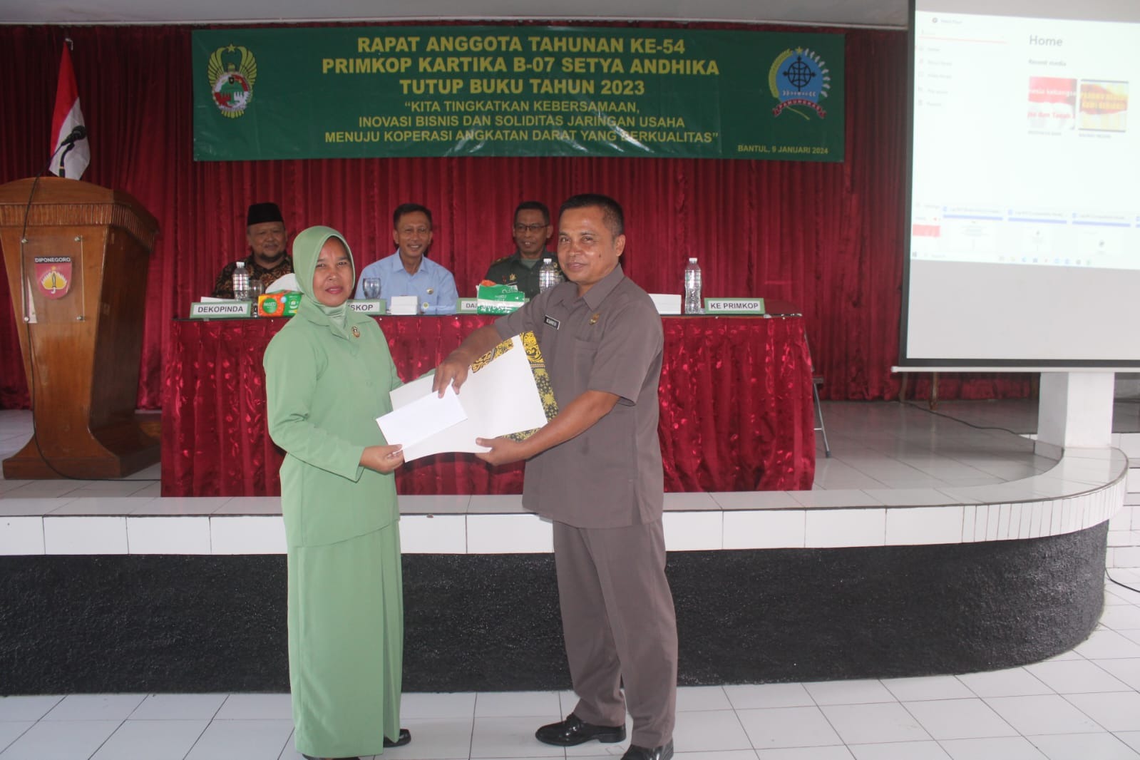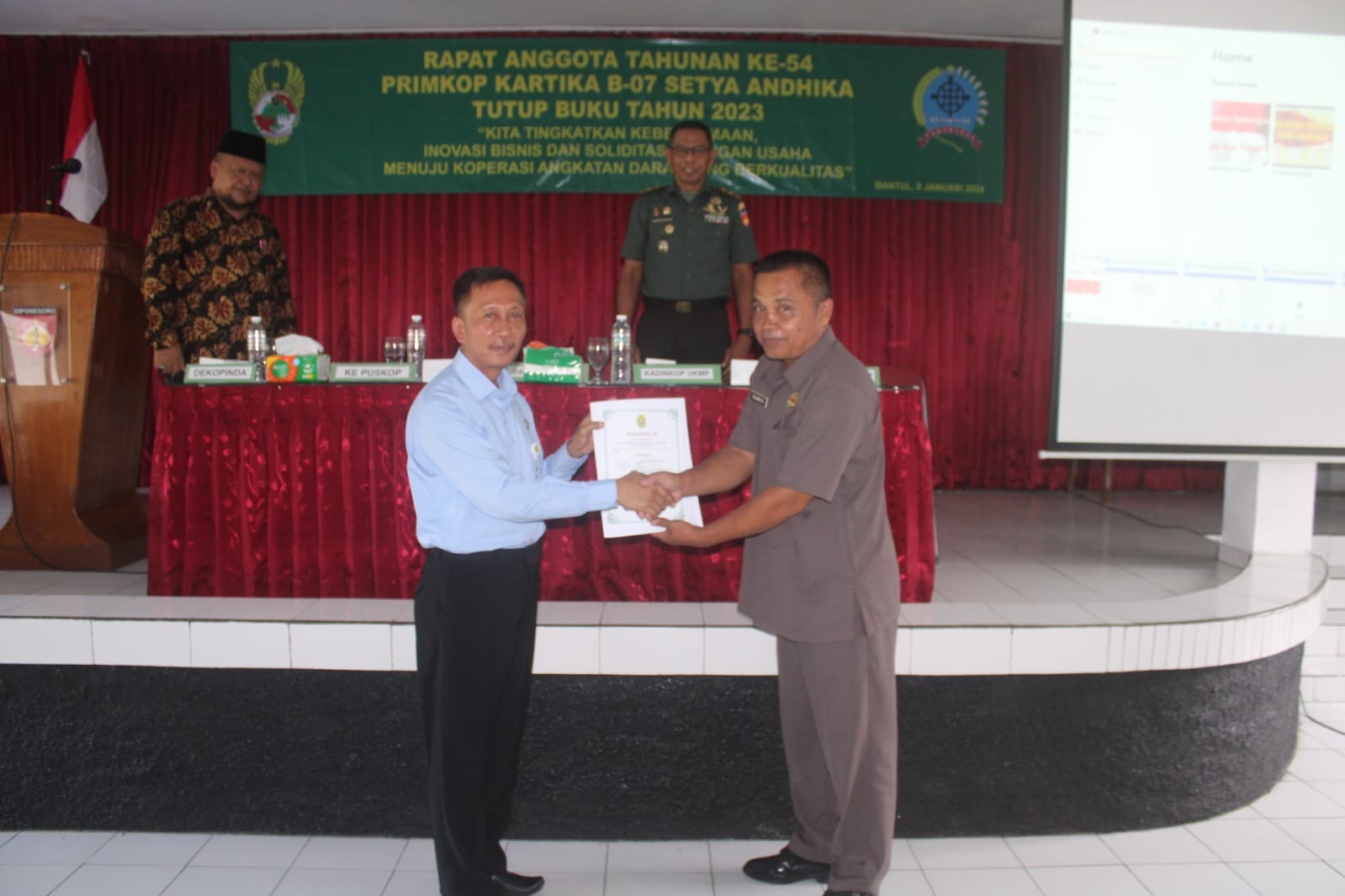 Bantul-Primer Koperasi Kartika B-07 Setya Andhika Kodim 0729/Bantul menggelar Rapat Anggota Tahunan (RAT) di Aula Makodim 0729/Bantul. Rapat diikuti oleh 200 anggota Koperasi baik Prajurit TNI dan PNS Kodim serta Kanminvetcad IV-5/Bantul. Selasa (09/01-2024).