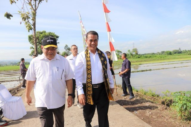 Bantul-Sebagai upaya untuk mempercepat masa tanam padi yang kemarin mundur akibat Gorila Elnino yang melanda Indonesia, Menteri Pertanian Imran Sulaiman MP turun langsung ke berbagai daerah salah satunya di Bantul, Yogyakarta Rabu (25/01/24).