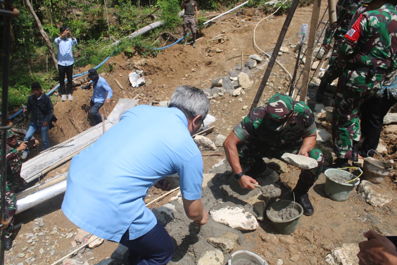 Bantul – Setelah upacara pembukaan pelaksanaan TMMD Reguler Ke – 119 Tahun 2024 pagi, Bupati bantul Bapak H. Abdul Halim Muslih, Danrem 072 Pamungkas, Brigadir Jenderal TNI Zainul Bahar, S.H., M.Si. dan Dandim 0729 Bantul, Letkol Inf Arif Hermad, S.I.P. beserta rombongan melaksanakan peletakan batu pertama disalah satu lokasi TMMD Reguler Ke – 119 tahun 2024 di Dusun Tangkil, Kal. Muntuk & Dusun Salam, Kalurahan Temuwuh, Kapanewon Dlingo, Kabupaten Bantul. (Selasa, 20/02)/