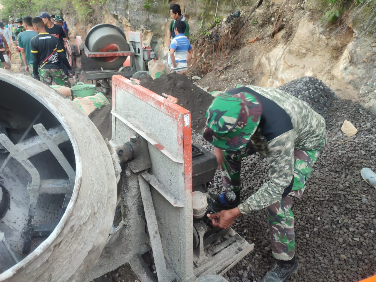 Disisi lain menyikapi rusaknya alat utama pengaduk material, membuat TNI dan masyarakat makin bekerja ekstra, dan membuat hubungan masyarakat TNI menjadi lebih erat, Bersama Rakyat TNI Kuat .