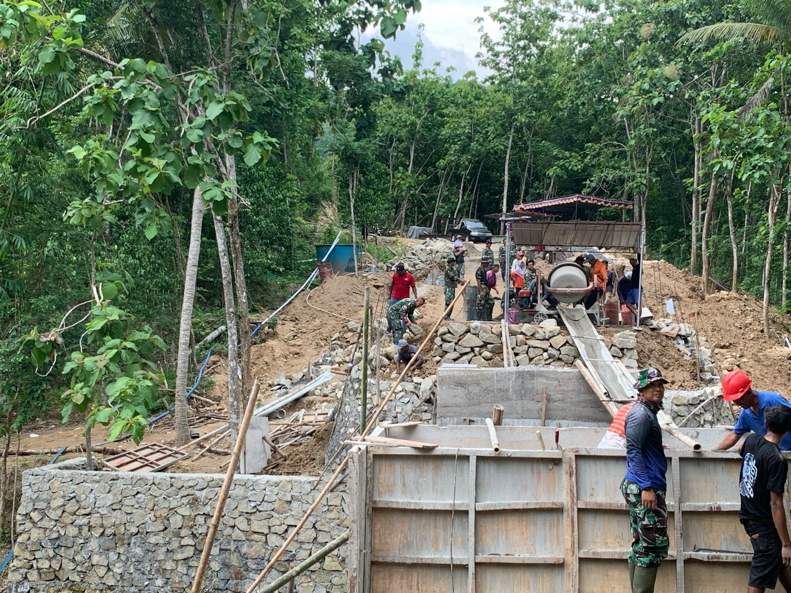 Pengerjaan pembuatan jembatan pada program TMMD Reg 119 Kodim 0729 Bantul di Dusun Tangkil, Kal. Muntuk & Dusun Salam, Kalurahan Temuwuh, Kapanewon Dlingo, Kabupaten Bantul terus mengalami progres yang positif. Kali ini, kegiatan yang dilakukan itu sudah masuk tahap pengecoran dudukan jembatan Dusun tangkil, Kalurahan Muntuk, Kapanewon Dlingo dengan lebar 12 M dan Bentang 12 M dan Pembuatan Talud penahan jembatan Di Dusun Tangkil, dengan Panjang Kanan Kiri 30 M, dan tinggi 5 M.