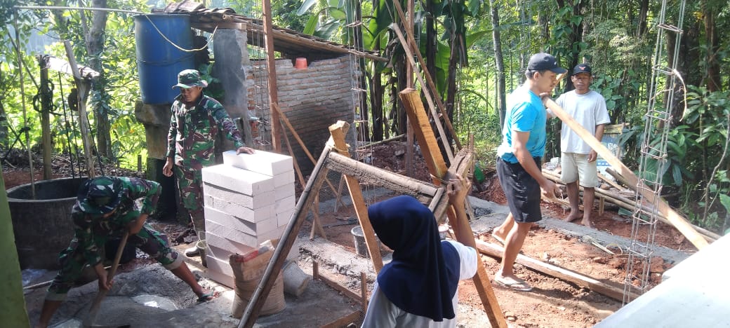 Komandan SSK Satgas TMMD Lettu Inf Redo Aswadi bersama anggota satgas lainya pun ikut berrgabung dalam pembuatan sarana MCK tersebut.