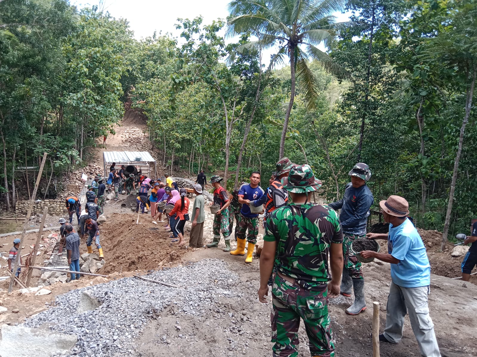Pembangunan jembatan ini merupakan salah satu impian masyarakat guna membuat jalan dan infrastrukur memajukan akses perekonomian warga. Nampak Satgas TMMD Reguler 119 Kodim 0729 Bantul yang di pimpin oleh Dan SKK, Lettu Inf Redo Aswadi bersama masyarakat saling gotong-royong membangun jembatan tersebut.