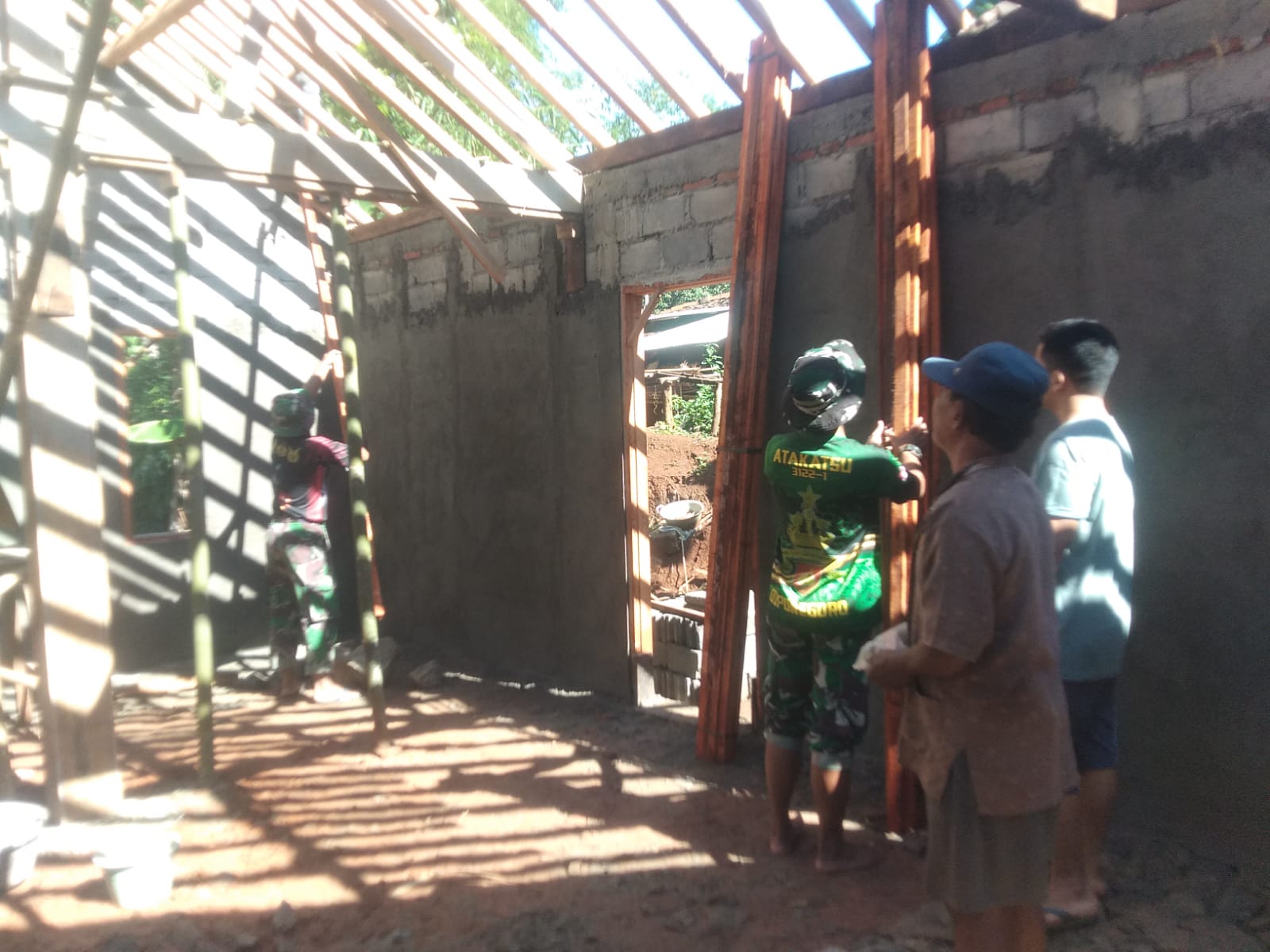Tim Satgas TMMD bersama masyarakat melanjutkan pekerjaan pembangunan rumah warga mengalami progres cukup signifikan, mulai dilaksanakan pemasangan isian dinding dengan bata hebel. “Pekerjaan rehab RTLH itu dilakukan bersama, warga dan personel TNI,” kata Serma Tri Gunawan.