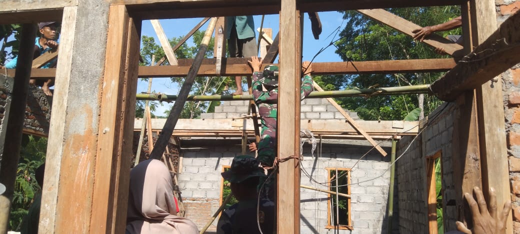 Bantul – Personel Satuan Tugas TMMD Reguler 119 Kodim 0729 Bantul melaksanakan rehab Rumah Tidak Layak Huni (RTLH) milik Bapak Sukidi 45 Tahun bekerja sebagai buruh serabutan di Dusun Tangkil, Rt 02 Kal, Muntuk Kap, Dlingo dimana dinding rumahnya masih menggunakan anyaman bambu, lantai rumah masih tanah dan belum meiliki MCK.