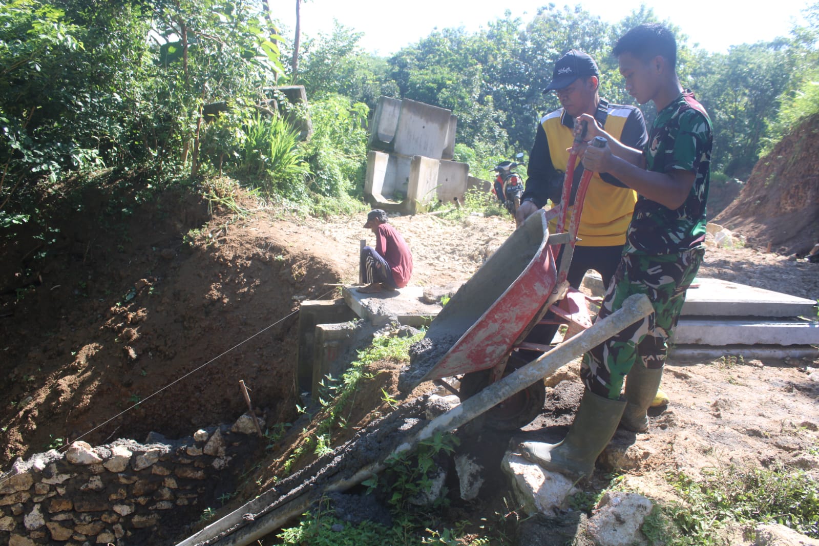 Puluhan personel anggota Satgas TMMD membahu membangun drainase ini merupakan salah satu sasaran dalam pelaksanaan TMMD yang telah dilaksanakan. Harapan dalam pengerjaan pembuatan bisa segera rampung sehingga bisa membantu percepatan pembangunan pada sasaran berikutnya, selain itu kendala kita dilapangan ialah Cuaca yang yang tidak menentu.