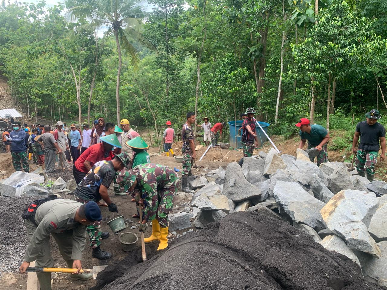 Semangat kerja Satgas TMMD dan warga tak pernah pudar meski dihadapkan dengan cuaca yang tidak menentu dan medan yang terjal dengan tebing yang cukup dalam. Warga sangat senang dengan adanya pembangunan di daerahnya, karena akan membawa manfaat yang luar biasa dalam rangka peningkatan kesejahteraan, bagi warga.