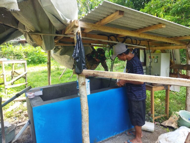 Bantul – Satuan Tugas (Satgas) TMMD Reguler 119 Kodim 0729 Bantul bersama masyarakat membangun Sarana Prasarana (Sarpras) air bersih bagi masyarakat guna pemenuhan penyediaan air bersih bagi masyarakat setempat di Dusun Tangkil, Kal. Muntuk & Dusun Salam, Kalurahan Temuwuh, Kapanewon Dlingo, Kabupaten Bantul.