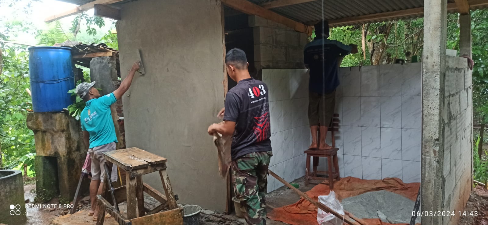 ”TMMD Reguler 119 Kodim 0729 Bantul pengerjaan pembangunan dan rehab Mushola Al Hidayah terus kita lakukan. Salah satunya yakni pemasangan keramik di kamar mandi dan tempat wudhu,” kata Serma Tri Gunawan.