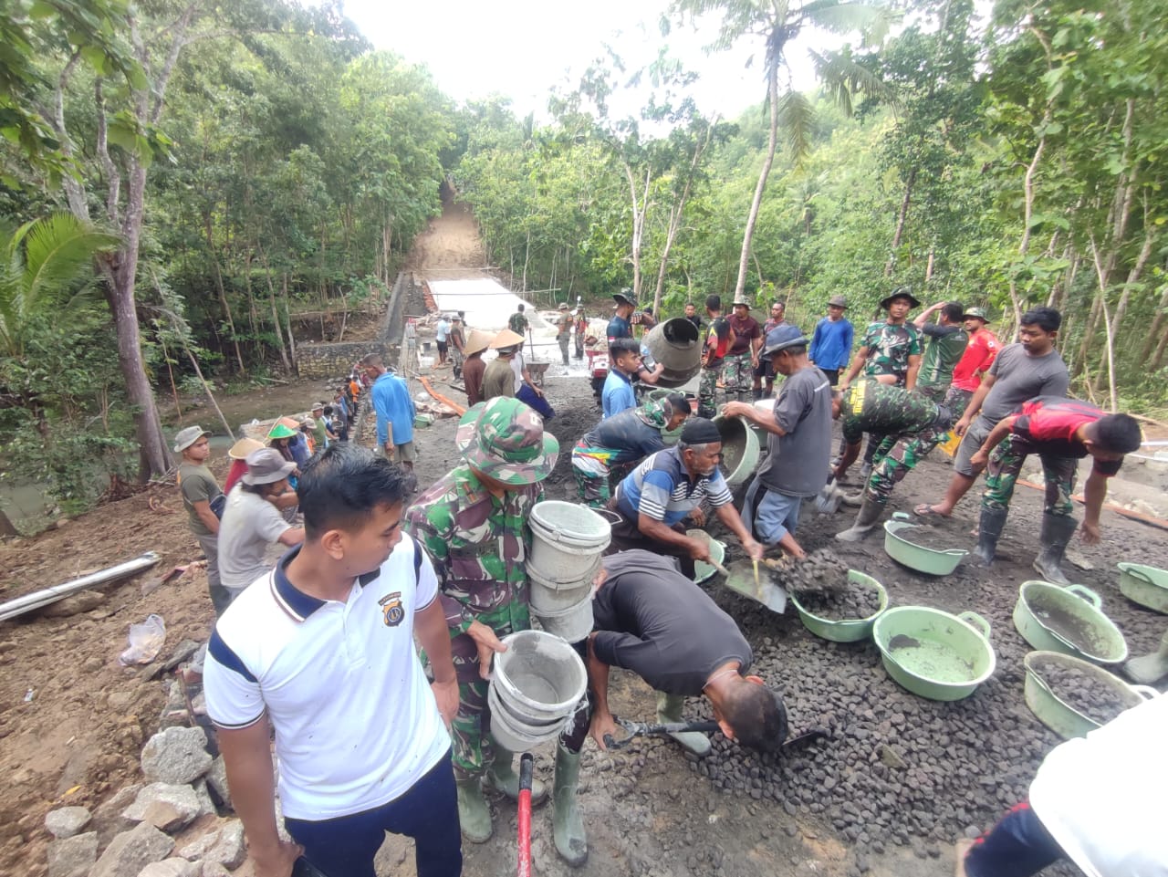 “Memang saat ini pelaksanaan TMMD sudah memasuki minggu ketiga, tetapi semangat seluruh anggota TNI-Polri yang tergabung dalam Satuan Penugasan TNI Manunggal Membangun Desa, masih sangat luar biasa dibantu masyarakat bekerja menyelesaikan pembuatan jembatan,” ujarnya.