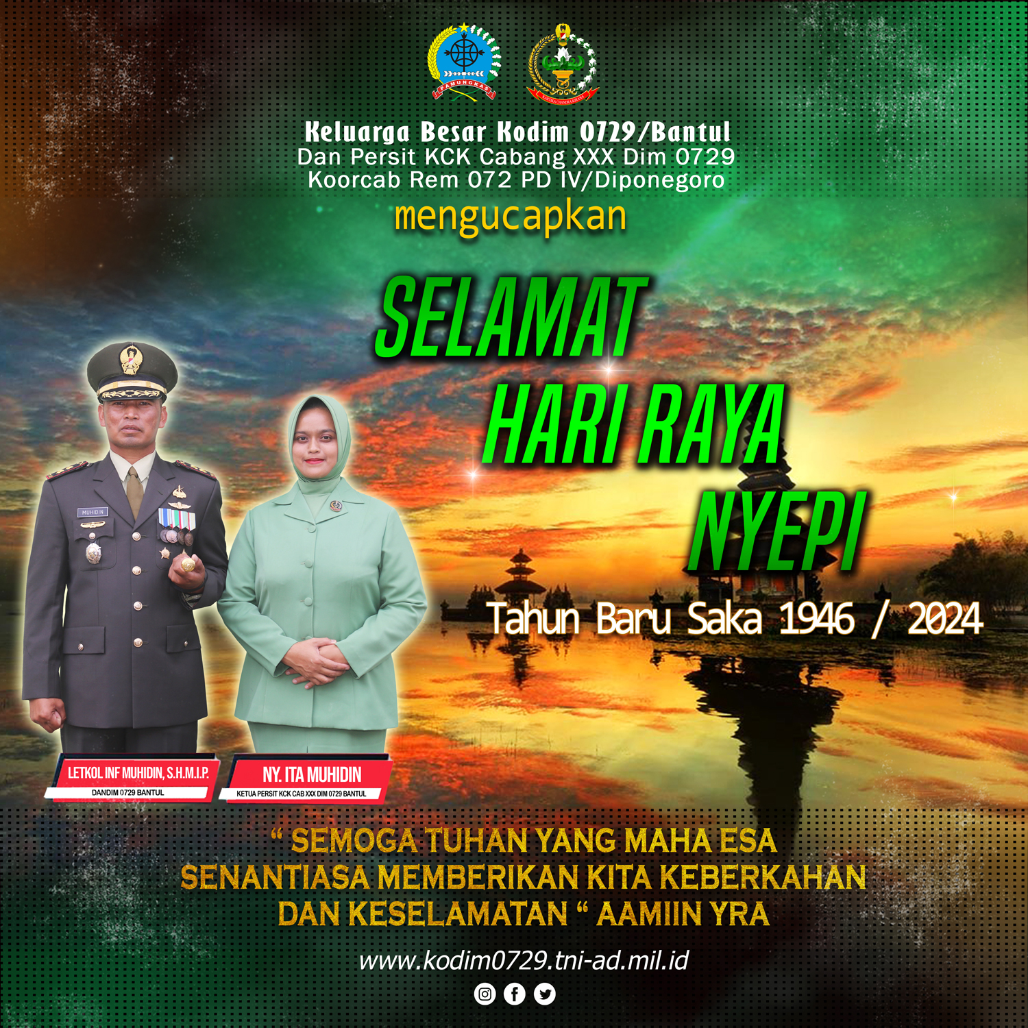 Beranda / Selamat Hari Raya Nyepi Tahun Baru Saka 1946 / 2024Selamat Hari Raya Nyepi Tahun Baru Saka 1946 / 2024Maret 10, 2024 Share this ArticlePrevious ArticleMarhaban Ya Ramadhan Selamat Menunaikan Ibadah Puasa 1445 Hijriyah Tahun 2024Next ArticleDandim Paser Paparan TMMD ke – 121 Tahun 2024, Berlangsung di Hadapan Danrem 091/ASNadmin