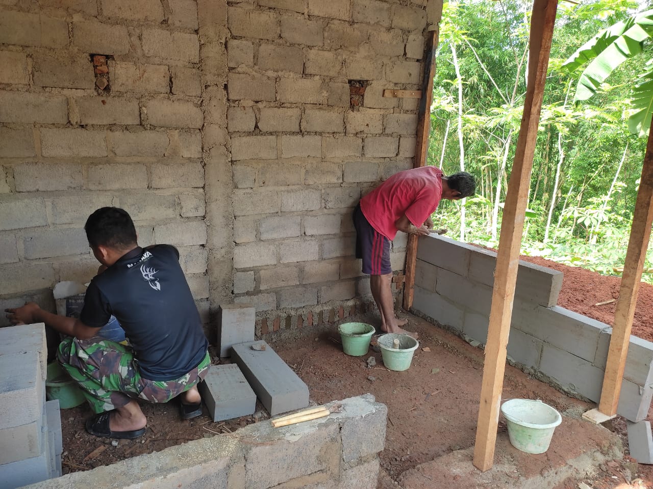 “Demi untuk mewujudkan impian memiliki rumah Sukidi dibantu Ngatini isterinya selalu mengerjakan sendiri dalam proses pembangunan, kebetulan Sukidi berpengalaman dalam bekerja dibangunan sehingga sedikit banyak bisa membatu pekerjaan” terang Sertu Drajat