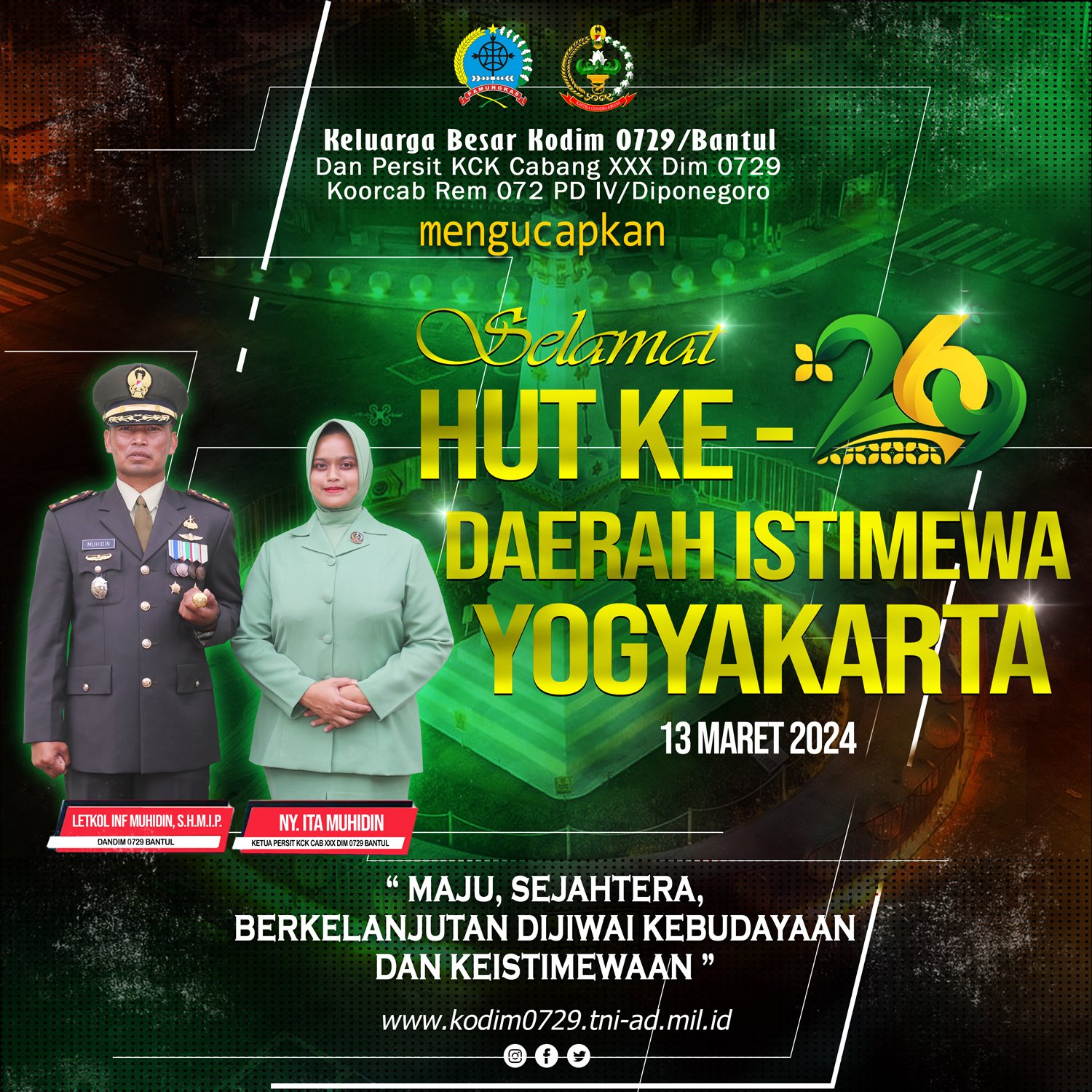 Selamat Hari Ulang Tahun Ke – 269 Daerah Istimewa Yogyakarta 13 Maret 2024 “Maju, Sejahtera, Berkelanjutan dijiwai Kebudayaan dan Keistimewaan”