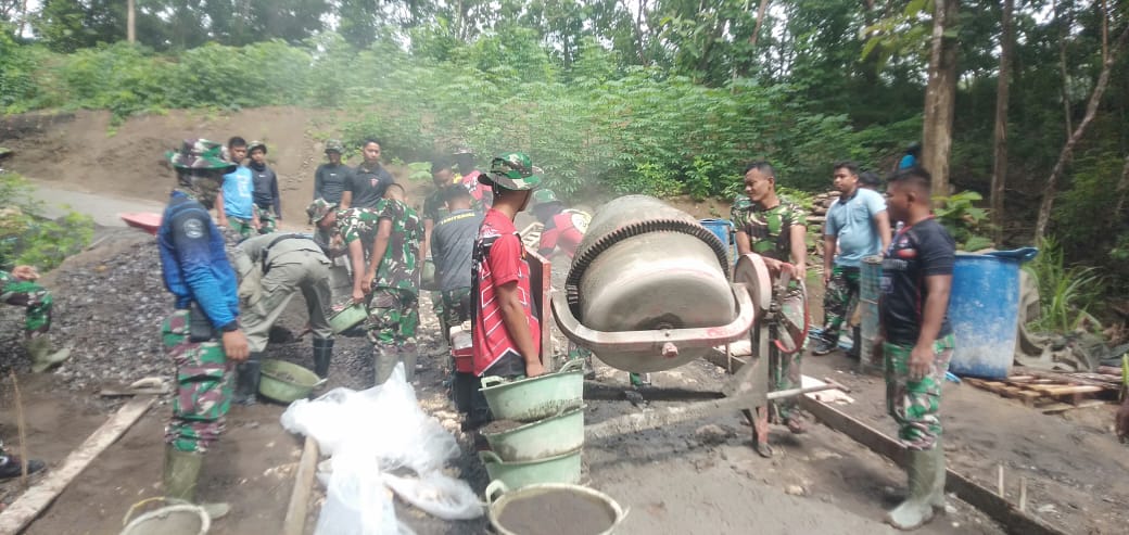 Dalam pelaksanaan pencampuran bahan cor mengunakaan mesin molen sebagai operatornya adalah Satgas TMMD Reguler 119 Kodim 0729 Prada Firman anggota dari Kompi Kavaleri 2 Jayengrata Tohraga yang handal dan humoris.