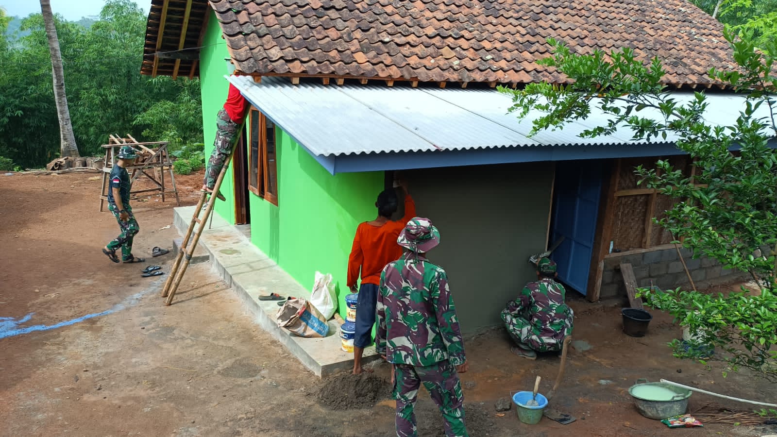 Bantul – Rehab Rumah Tidak Layak Huni (RTLH) merupakan salah satu program fisik TMMD Reguler 119 Kodim 0729 Bantul di Rumah Bapak Sukidi 45 Tahun dan Ibu Ngatini 43 Tahun bekerja sebagai buruh serabutan dimana dinding rumahnya masih menggunakan anyaman bambu, lantai rumah masih tanah dan belum memiliki MCK. (Sabtu, 16/03).