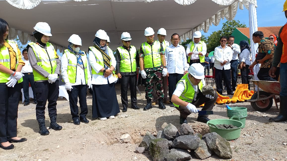 Dalam kesempatan tersebut peletakan batu pertama dilakukan oleh Bapak H. Abdul Halim Muslih (Bupati Bantul),