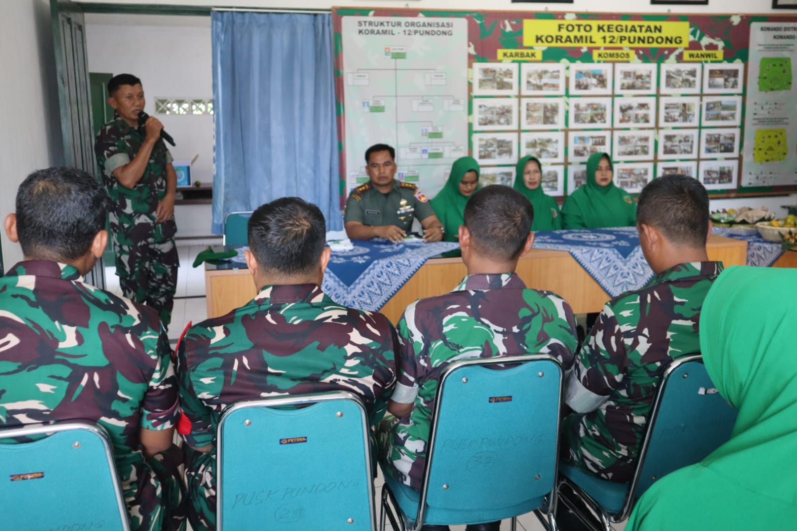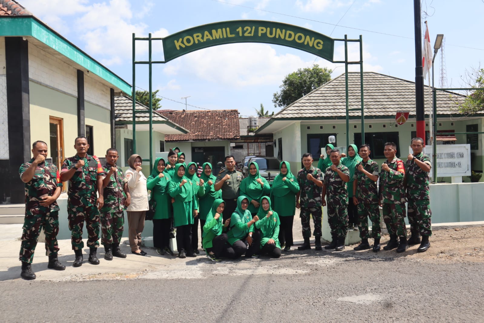Kedatangan Dandim beserta rombongan di Koramil Pundong disambut langsung oleh Danramil Kapten Chb Ladiya bersama Anggota maupun Persatuan Istri TNI (Persit) Ranting 13/Ramil 12/Pdg Cab XXX 0729.