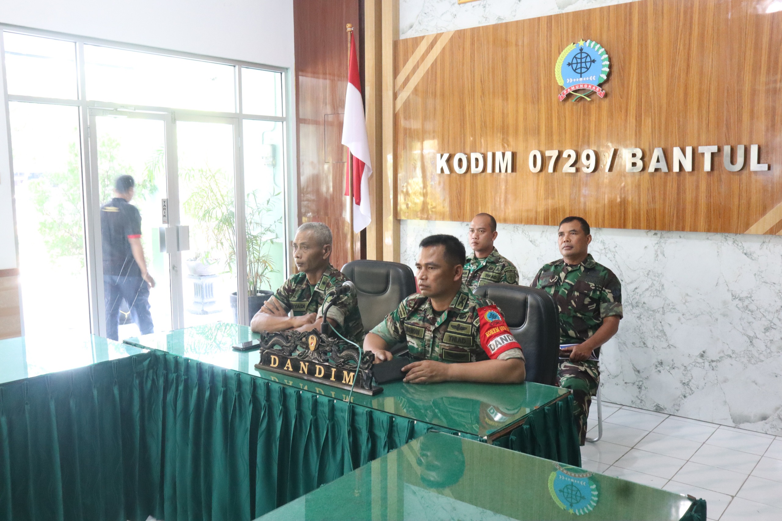 Bantul – Melalui sambungan video conference (Vicon), Dandim 0729/Bantul Letkol Inf Muhidin., S.H., M.I.P mengikuti Tactical Floor Game (TFG) Latihan Pra LKO ( Latihan Kesiapsiagaan Operasional ) Kodam IV/Diponegoro Tahun 2024 yang dipimpin langsung oleh Kasdam IV/Diponegoro Brigjen TNI Budi Irawan, S.I.P., M.Si. bertempat di ruang briefing Kodam IV/Diponegoro Semarang, Jum’at (31/05/24).